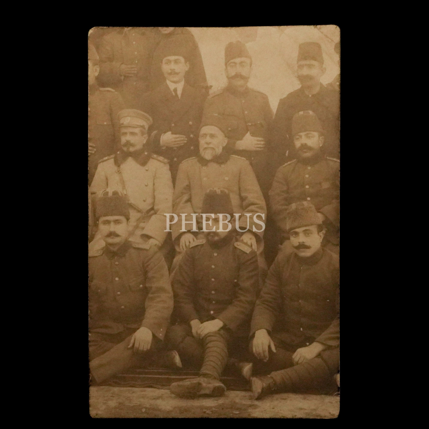 Esir düşen Osmanlı subaylarının hatıra fotoğrafı, 14x9 cm...