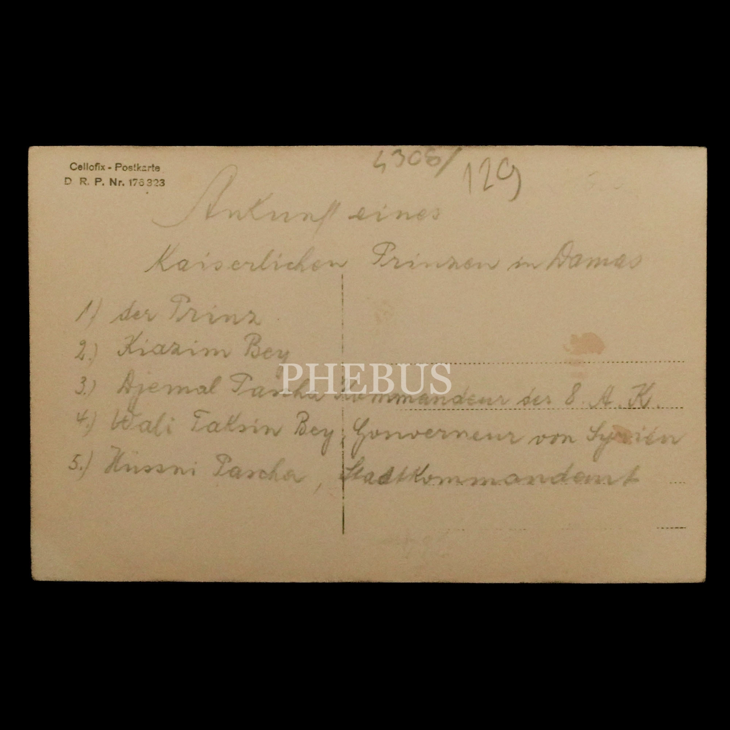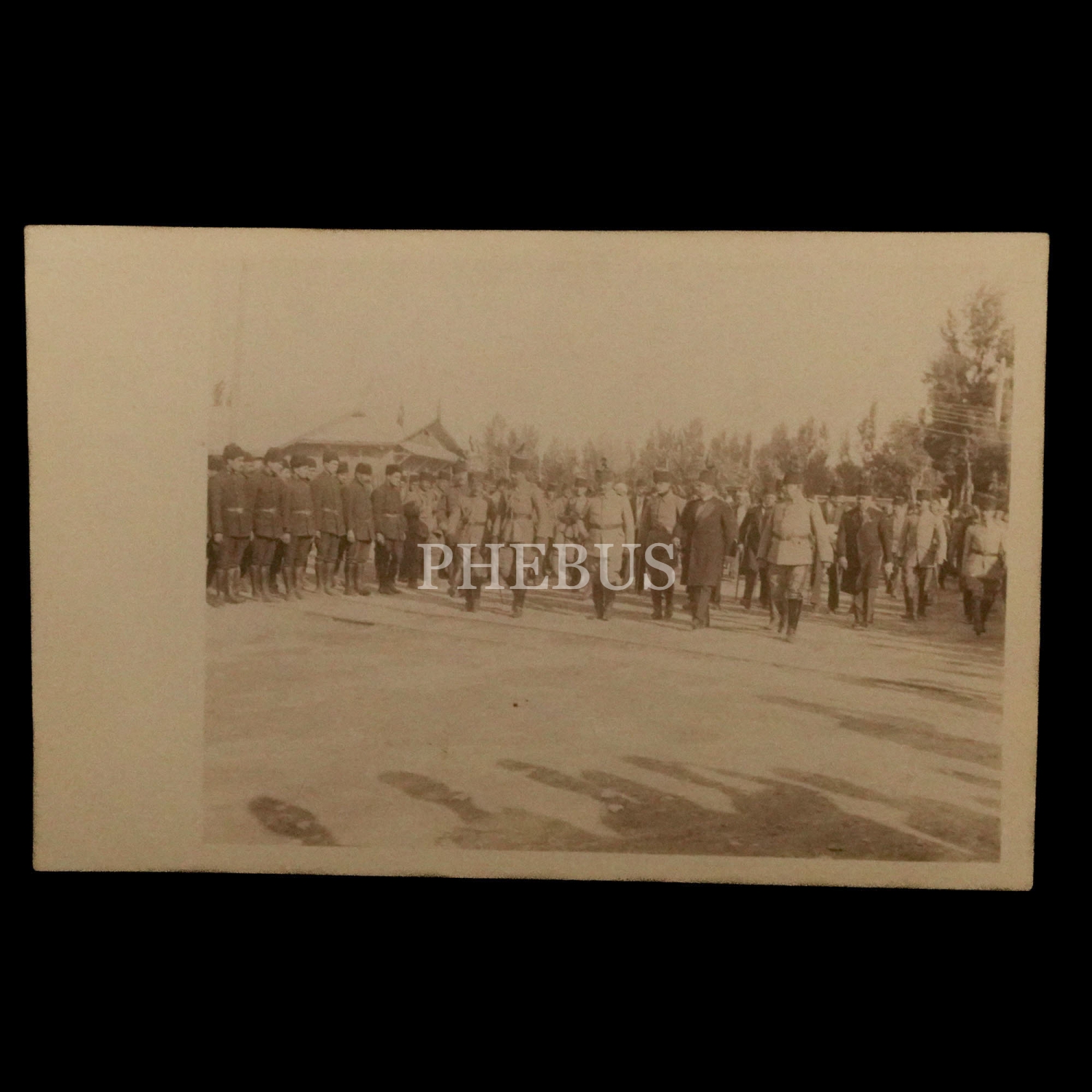 Şam´ı ziyaret eden bir Osmanlı şehzadesi, aralarında Suriye Valisi Hasan Tahsin (Uzer) Bey´in de yer aldığı Osmanlı devlet erkanıyla birlikte teftişte, 14x9 cm...