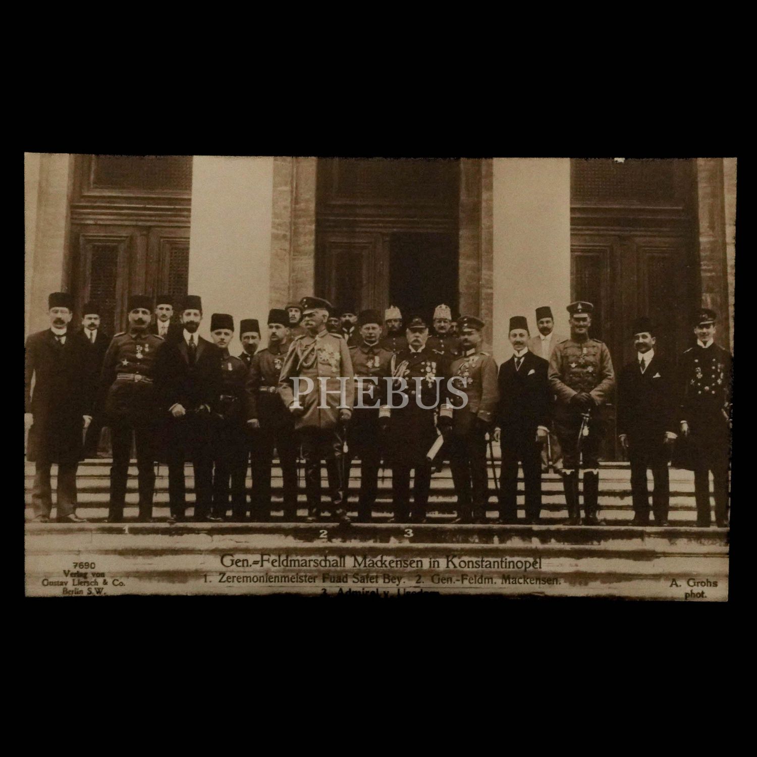 Birinci Dünya Savaşı´nda Alman ordusunda mühim vazifelerde bulunan "Son Süvari" lakaplı Mareşal August von Mackensen ve maiyeti İstanbul´da (1916), phot. A. Grohs - ed. Gustav Liersch & Co., 14x9 cm...