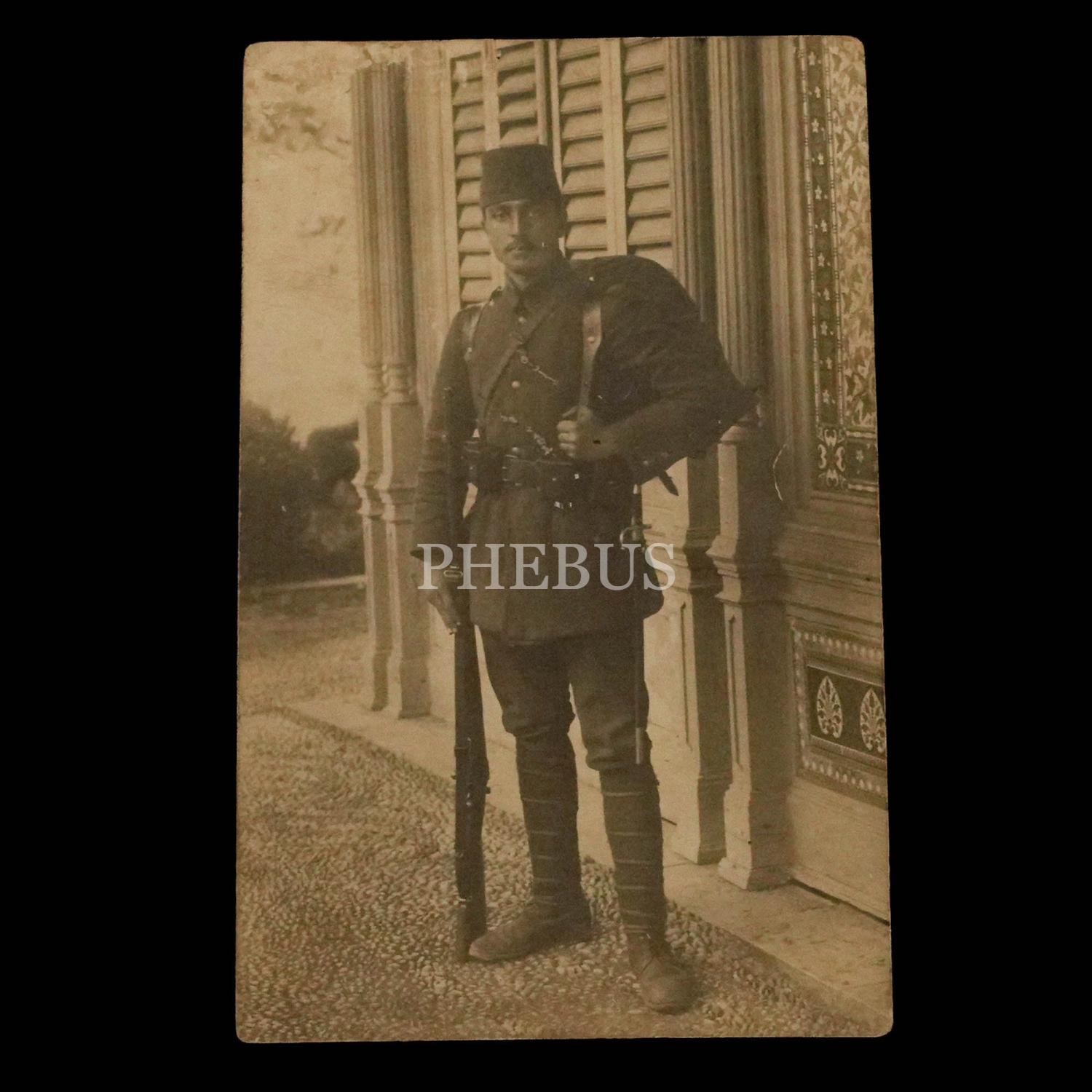 Mektep-i Harbiye öğrencisinin üniformasıyla çektirdiği hatıra fotoğrafı, 14x9 cm...