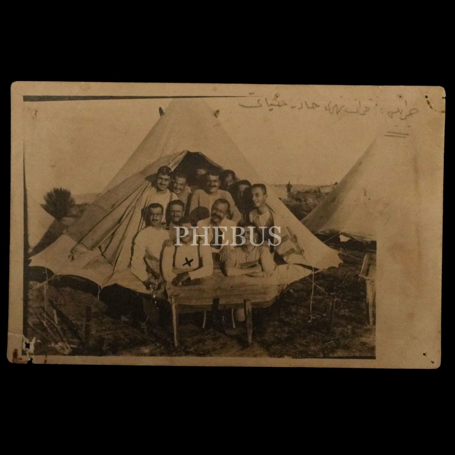 Trablusgarp´ta sıhhıyeci askerlerin sıhhiye çadırında çektirdikleri hatıra fotoğrafı, 14x9 cm...