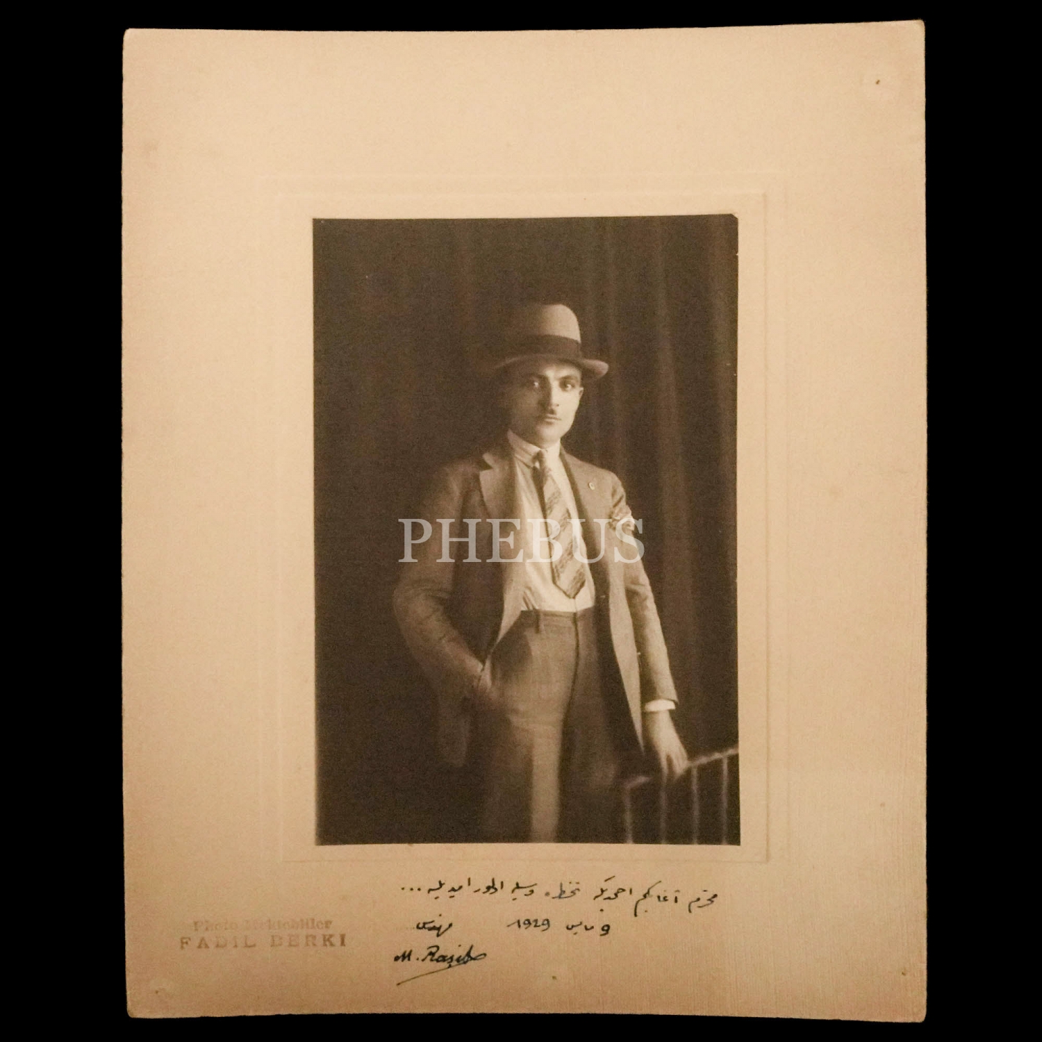 Mehmet Raşid Moralı´nın ithaflı ve imzalı stüdyo fotoğrafı, Photo Mektebliler (Fadıl Berki), fotoğraf 12x17 cm, paspartu 22x28 cm...