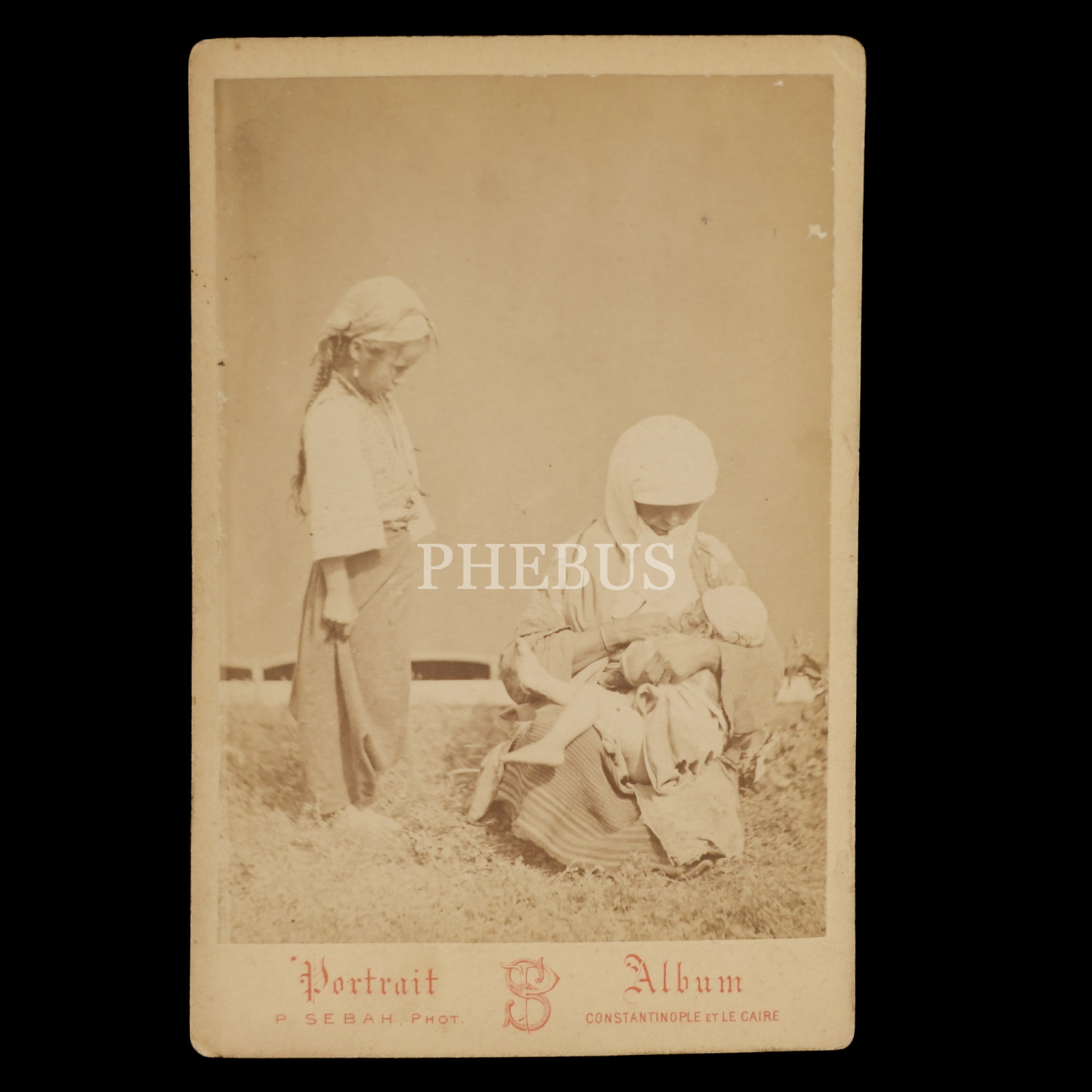 Dilenci kadın ve çocukları, Pascal Sebah Fotoğrafhanesi (Rue de Pera, Constantinople), 11x17 cm...