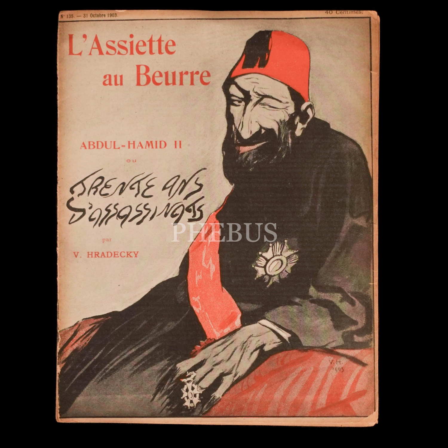 L´ASSIETTE AU BEURRE dergisinin, tamamı Sultan İkinci Abdülhamid karşıtı karitürlerden oluşan, 31 Ekim 1905 tarihli 135. sayısı, 25x32 cm...