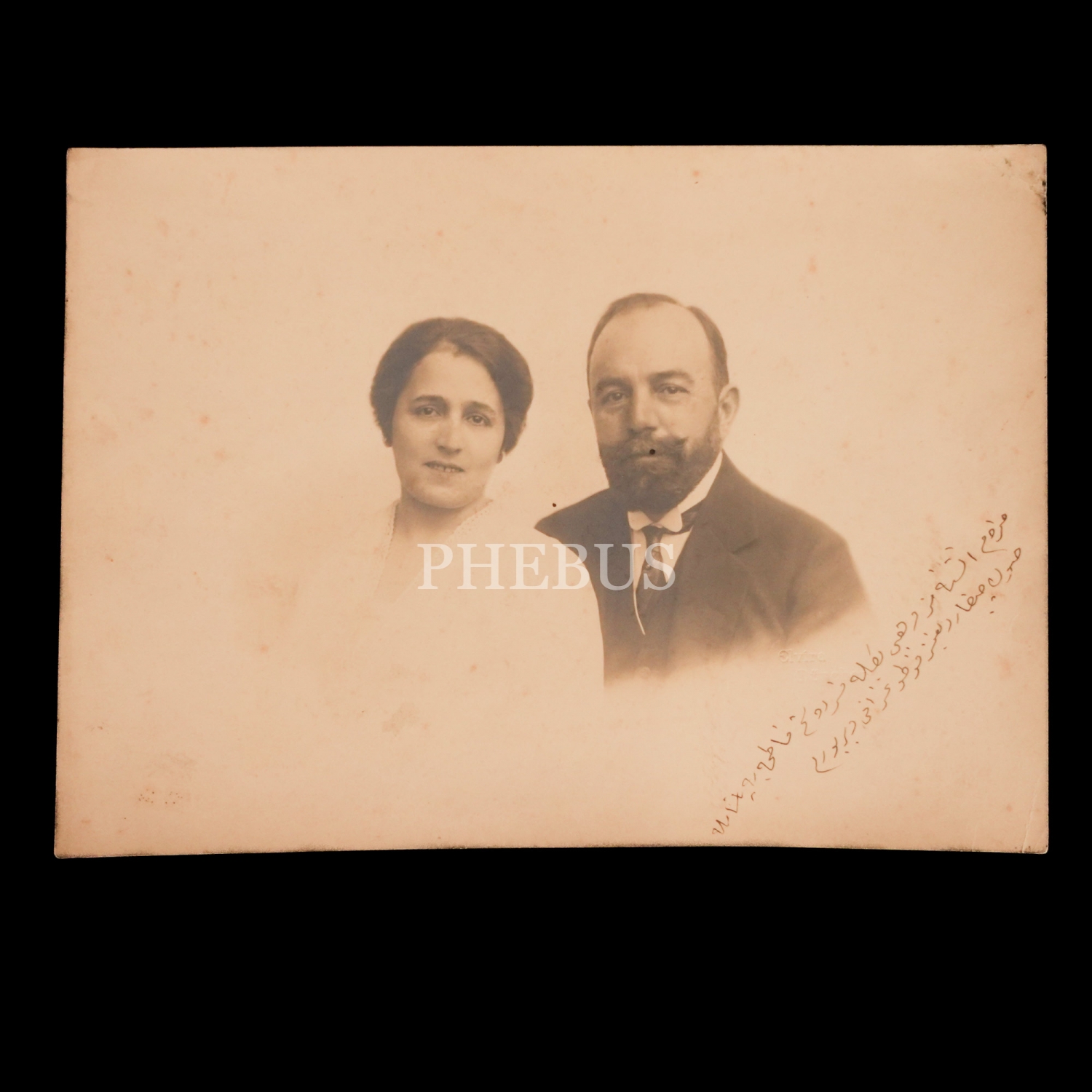 İttihat ve Terakki´nin üç büyük paşasından biri olan Cemal Paşa ve eşi Seniha Hanım´ın stüdyo hatıra fotoğrafı, 22x16 cm...