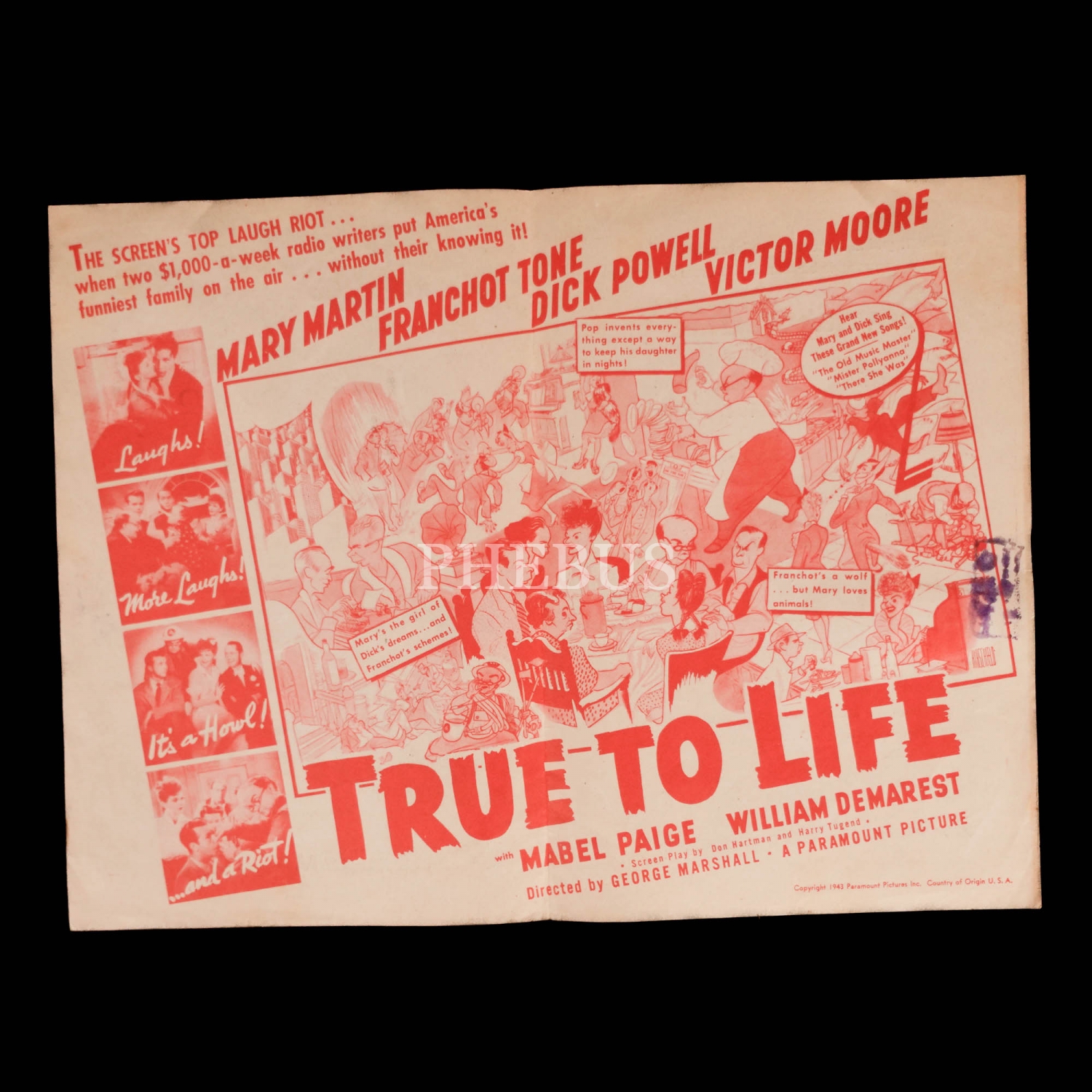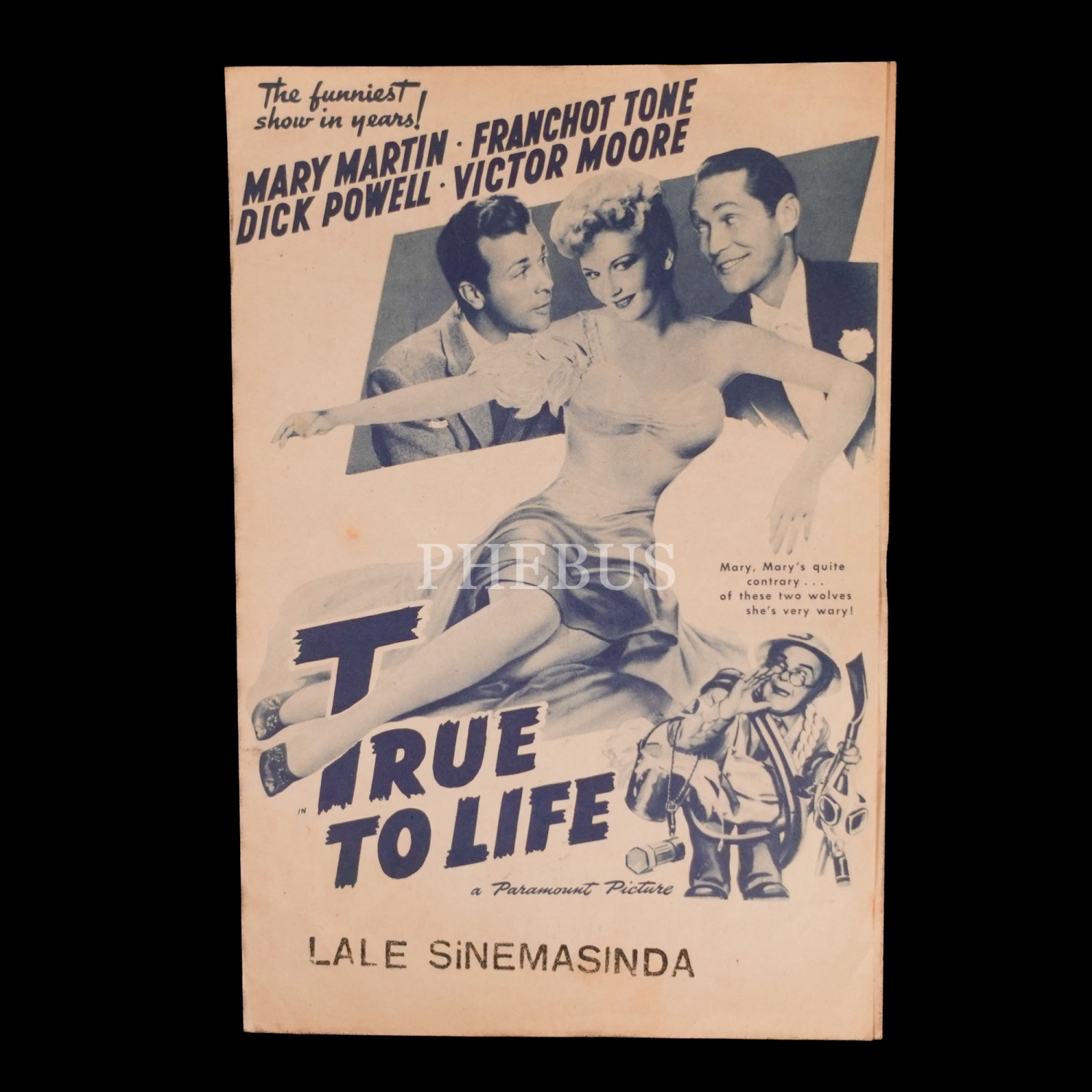TRUE TO LIFE / SEVDA YARIŞI filminin (1943) Lale Sineması´nda gösterime girdiğini duyuran, İngilizce - Fransızca - Türkçe yazılı el ilanı, 15x23 cm...