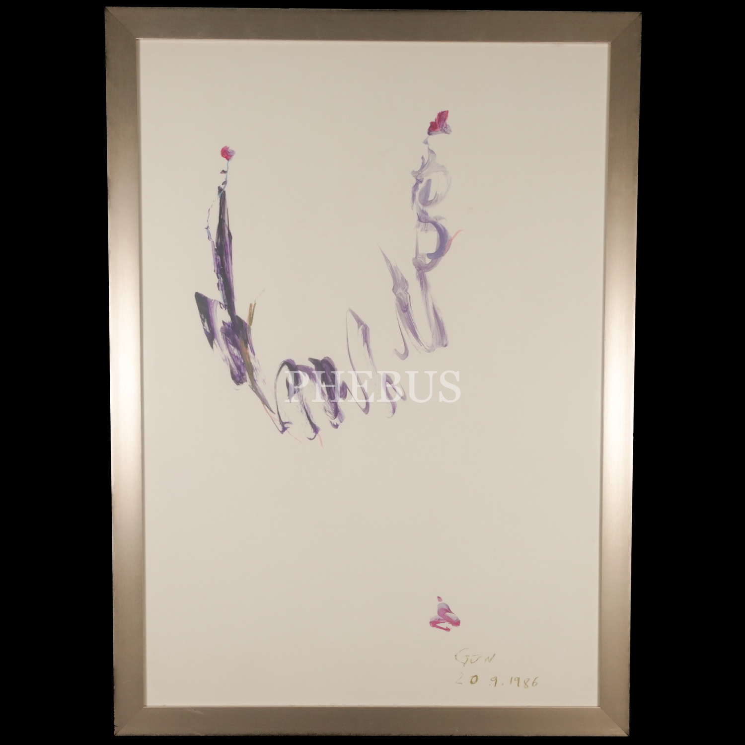 Mehmet Gün (1954-2014) imzalı soyut kompozisyon, kâğıt üzerine karışık teknik, 20 Eylül 1986 tarihli, çerçevesiyle birlikte 78x108 cm...