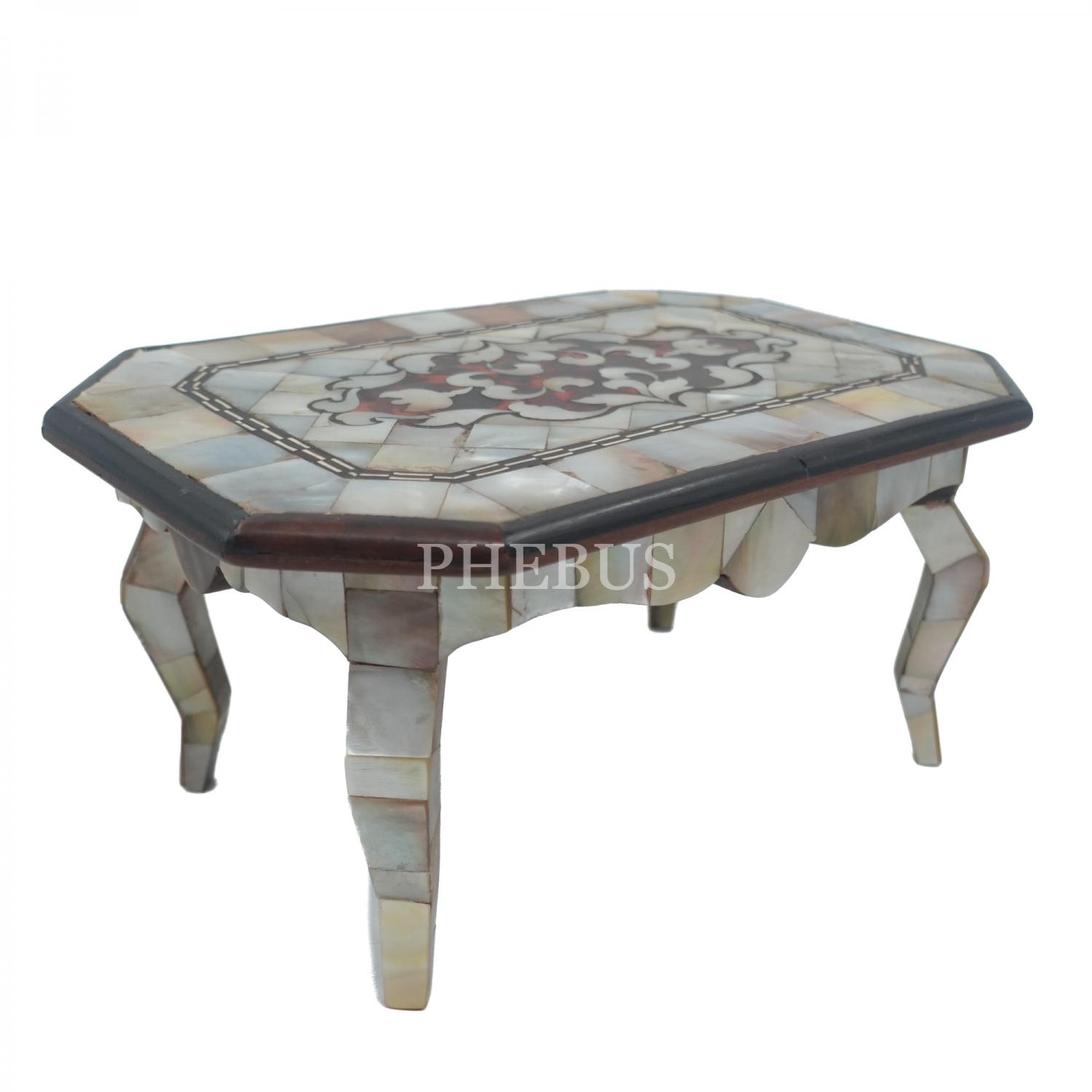 Ahşap üzeri sedef ve bağa işçilikli minyatür masa, 23x15x11 cm...