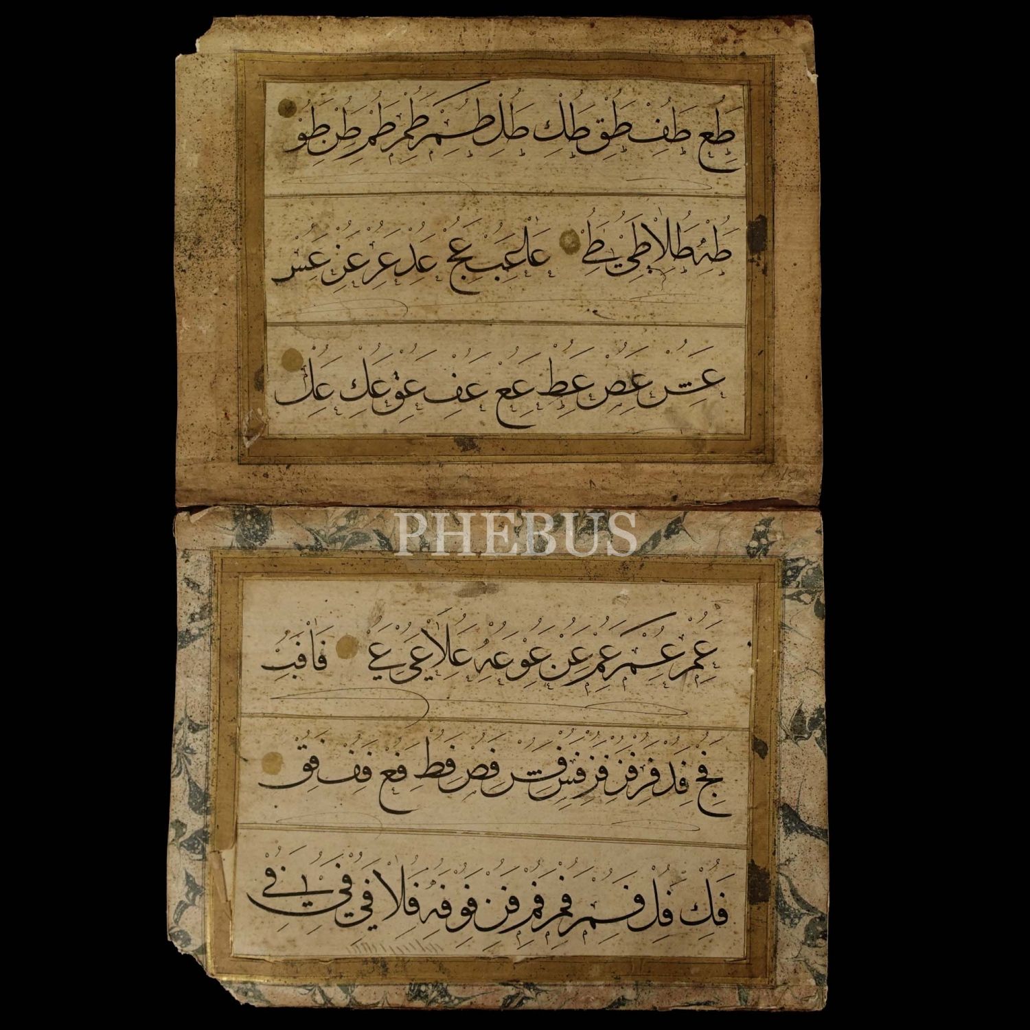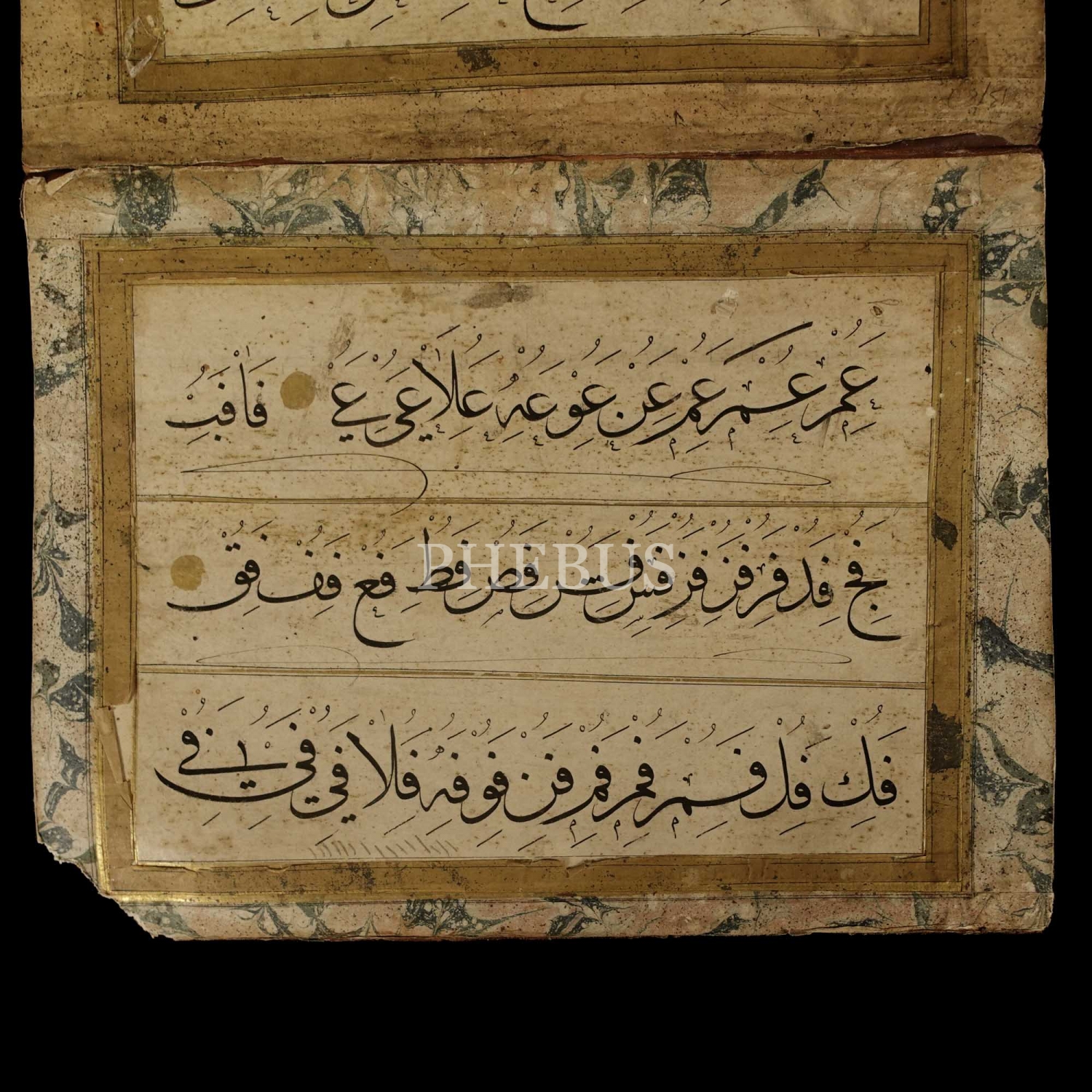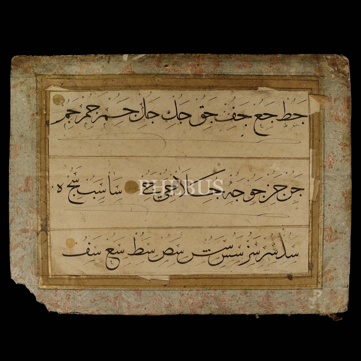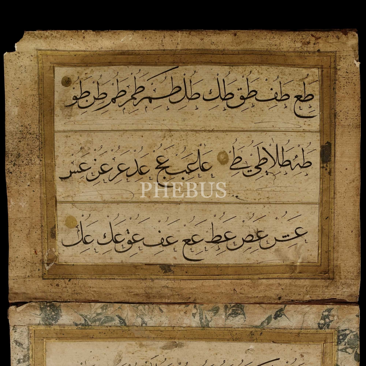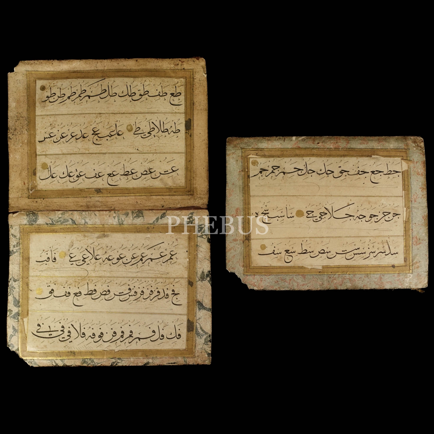 SÜLÜS HURUFAT MEŞKİ, altın cetvelli, 3 sayfa, 27x21 cm...