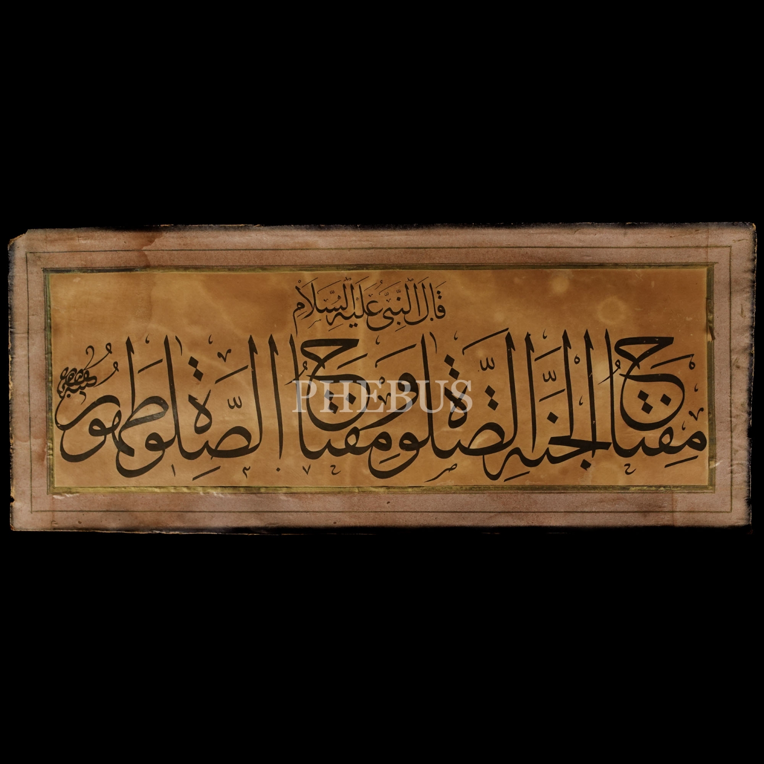 Mustafa ketebeli, celi sülüs Hadis-i Şerif hat levhası, 1307, 57x24 cm...