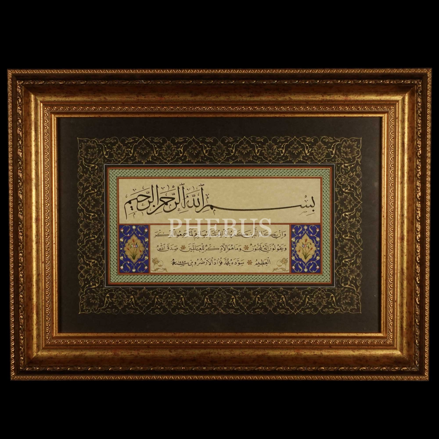 Nazar ayeti yazılıdır. (Kalem Suresi 51 ve 52. ayetler)