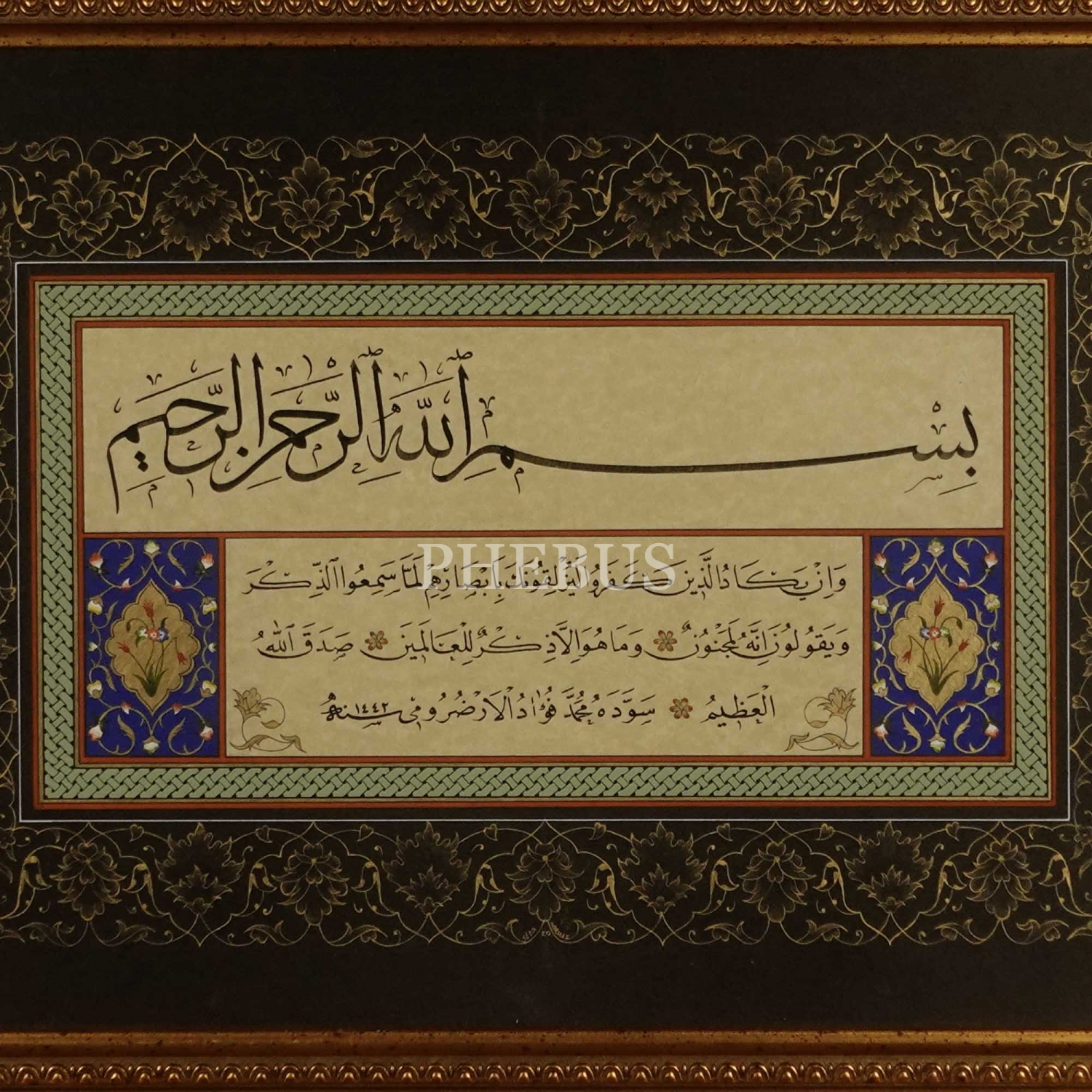 Fuat Başar ketebeli, sülüs nesih koltuklu levha, 1442, 60x45 cm...