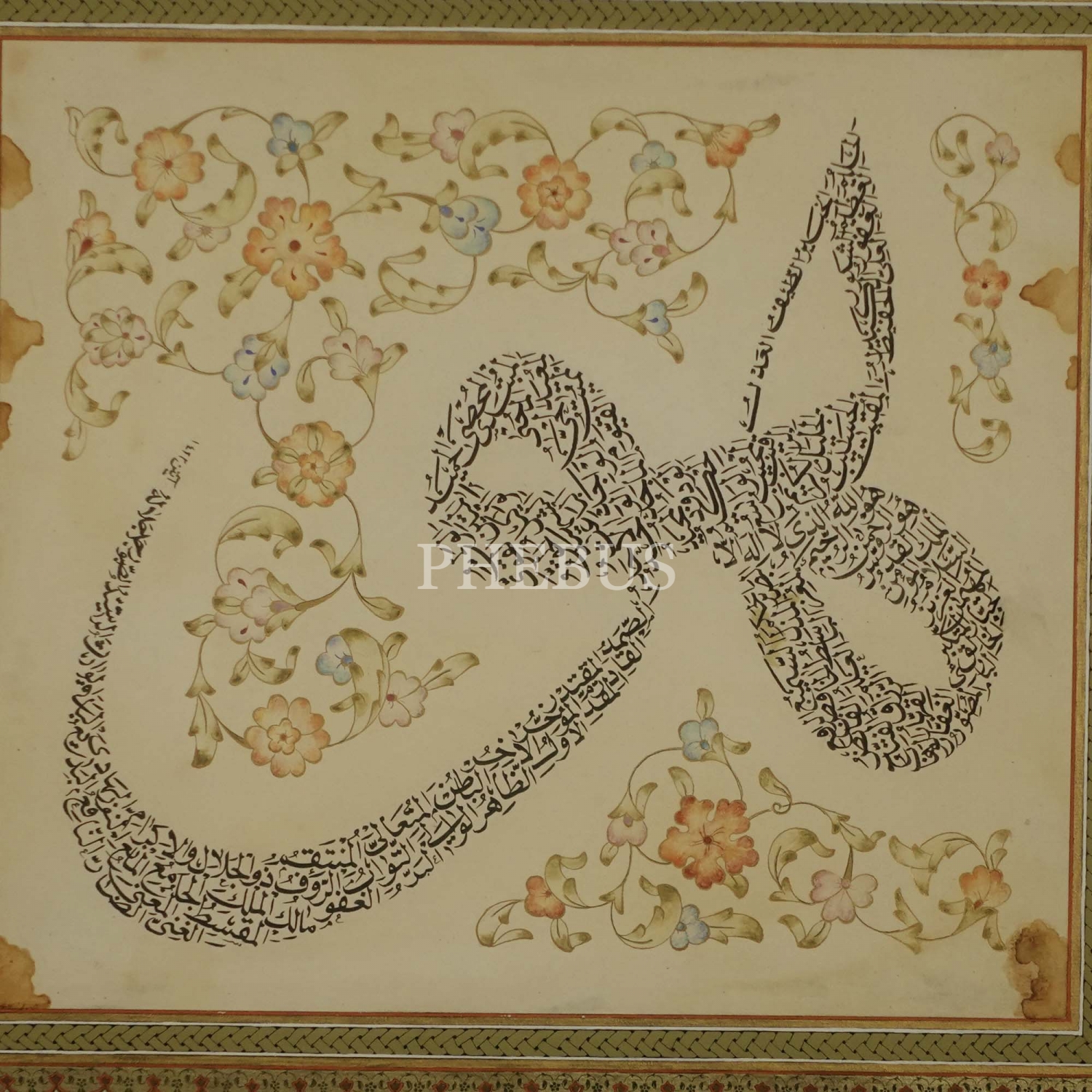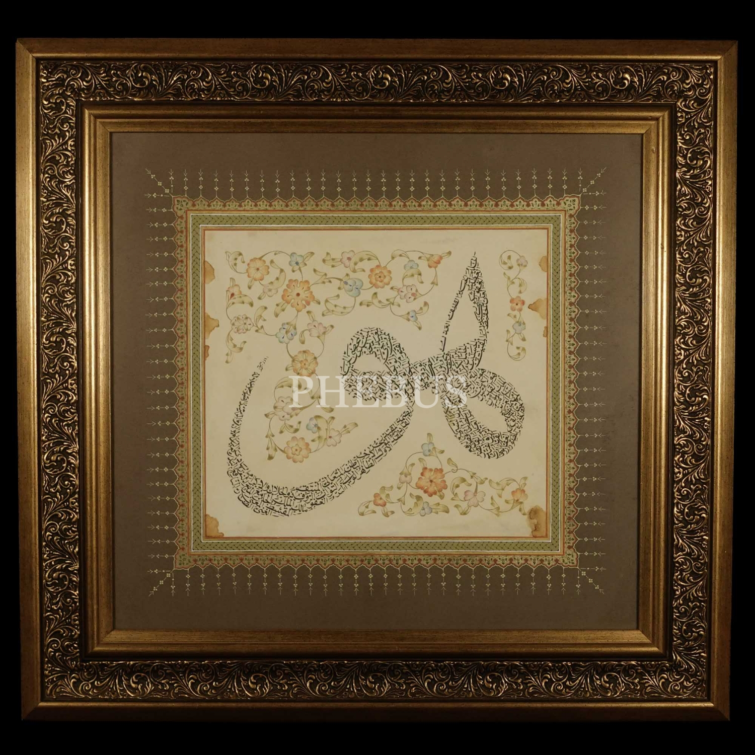 Ayten Tiryaki ketebeli, nesih-gubârî hat levhası, 1423, çerçevesiyle birlikte 61x58 cm...