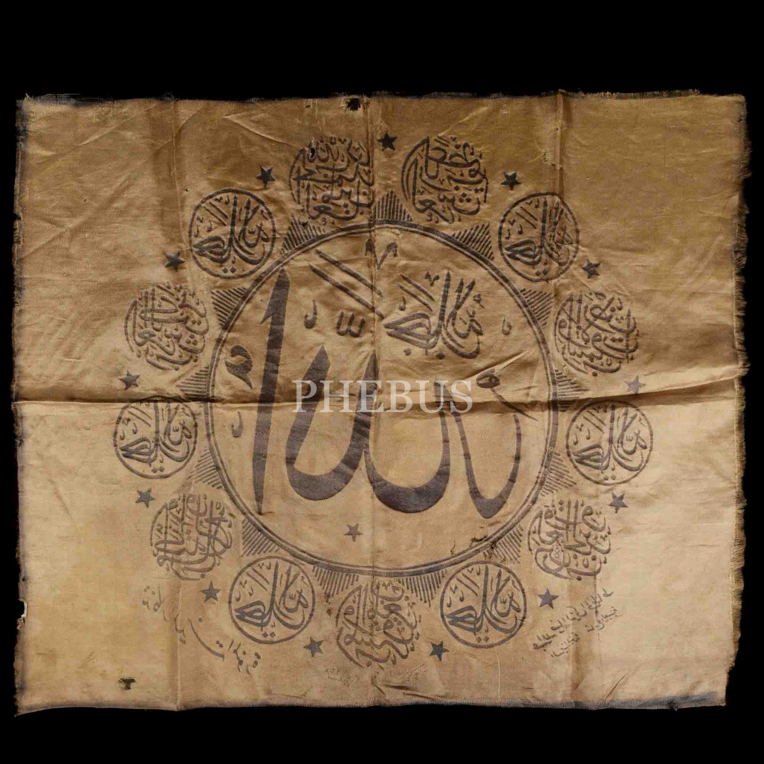 Medine-i Münevvere Yadigarı Lafzatullah Yazılı Kumaş, Abdullah Rıza et-Türkî el-Hattat ketebeli, 1958, 53x45 cm...,