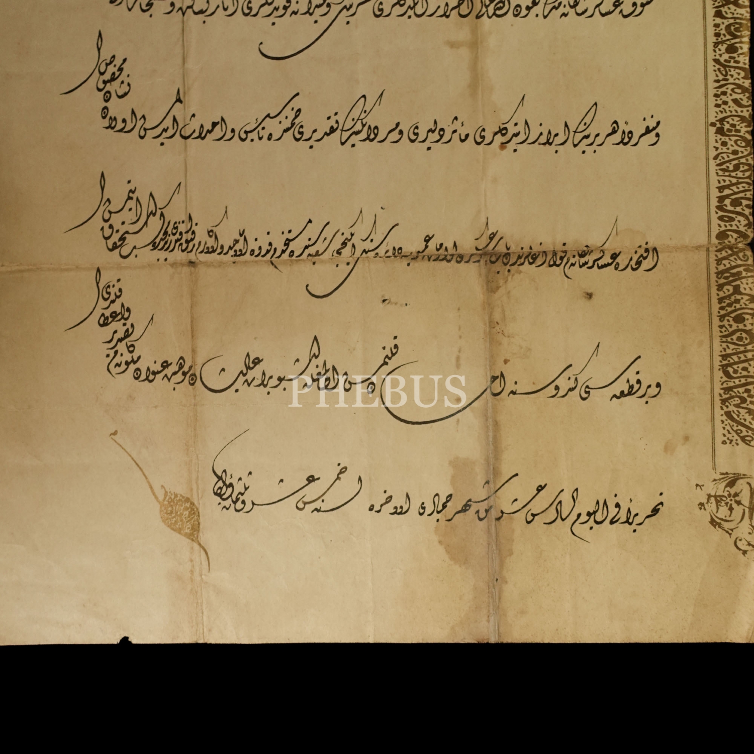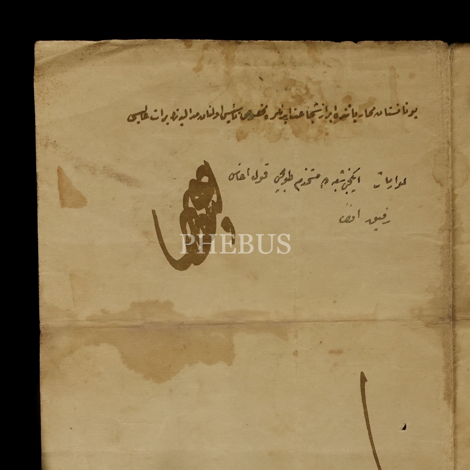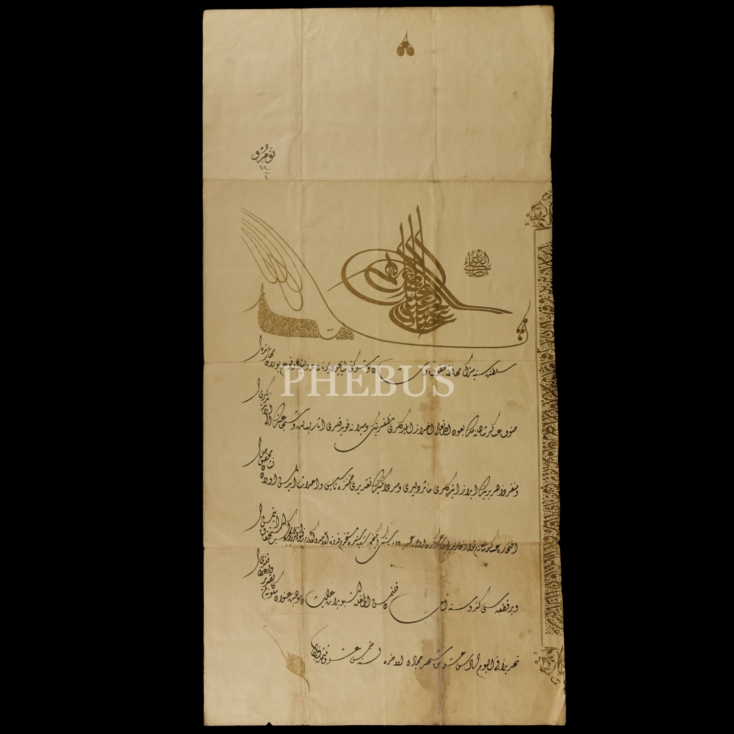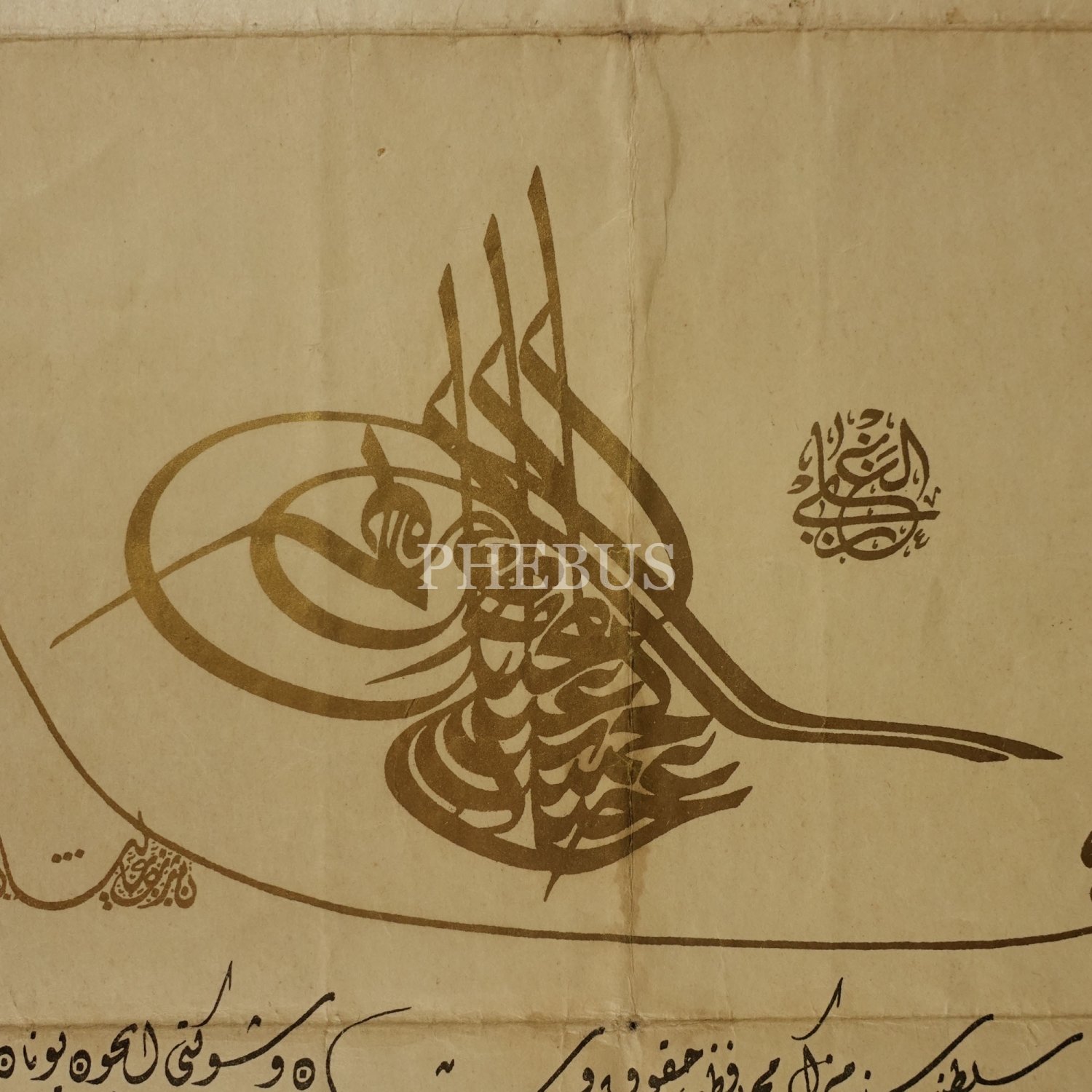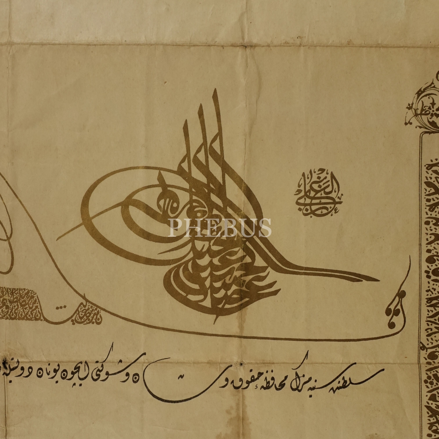 Kolağası Refik Efendi´nin Yunan Harp Madalyası kazandığına dair Sultan İkinci Abdülhamit tuğralı berat, 1315, 28x57 cm...