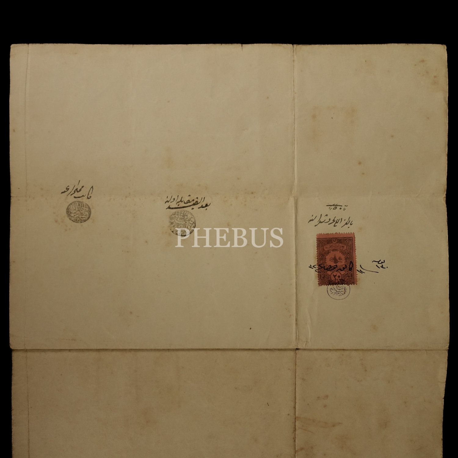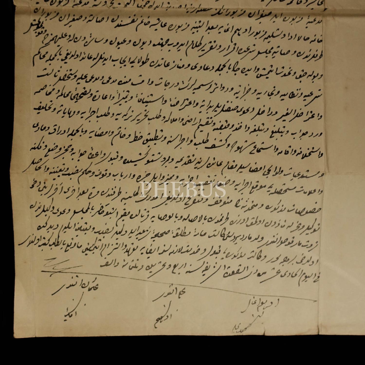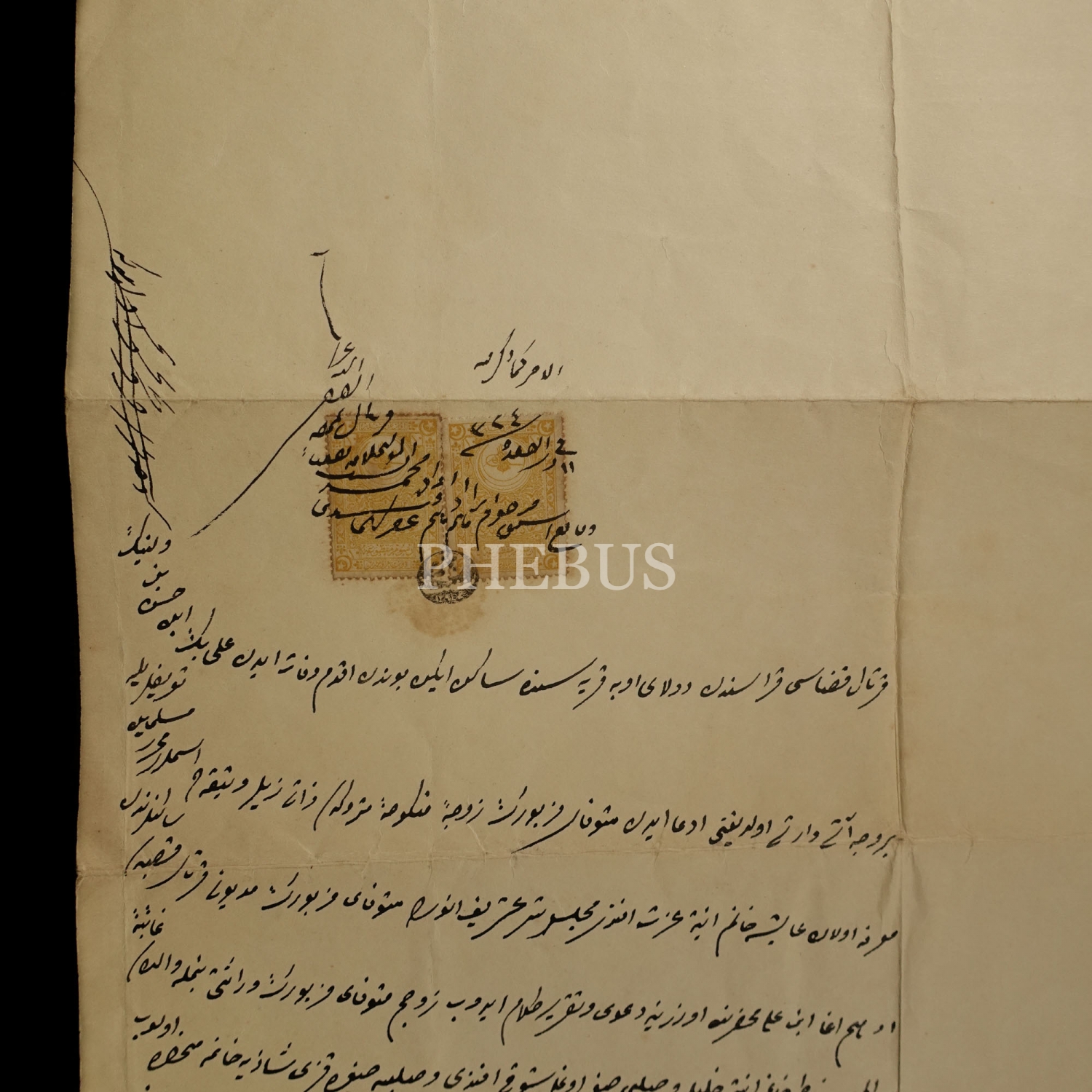 Kartal kazasının Oba karyesinde ikamet eden Hasan bin Veli Efendi´nin mal varlığının aile üyeleri arasında miras yoluyla taksim edilmesine dair mahkeme kararı, 80x29 cm...