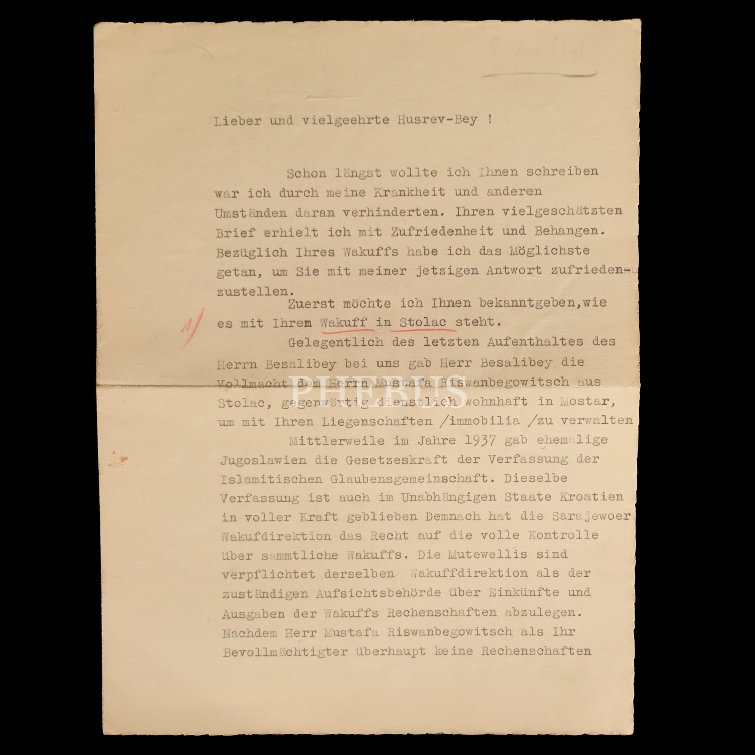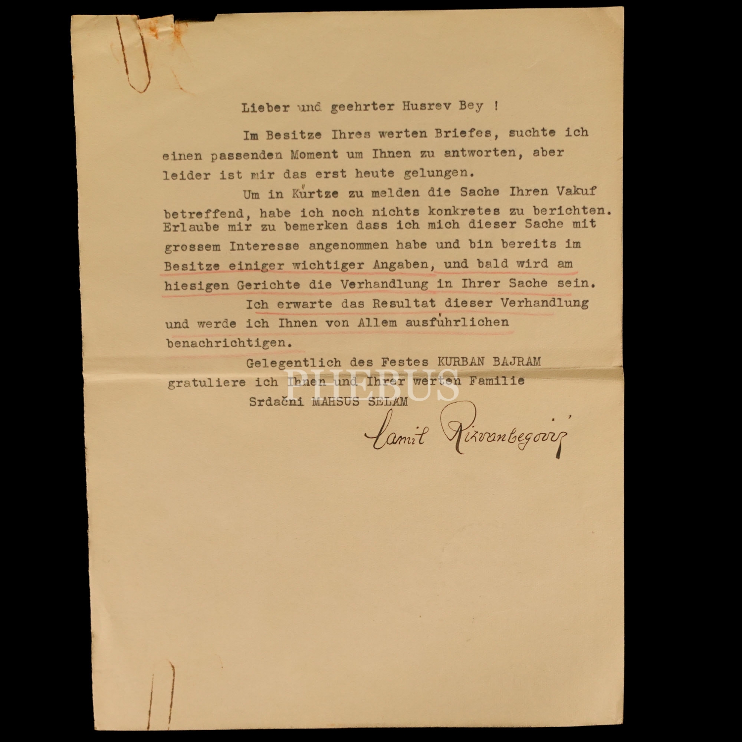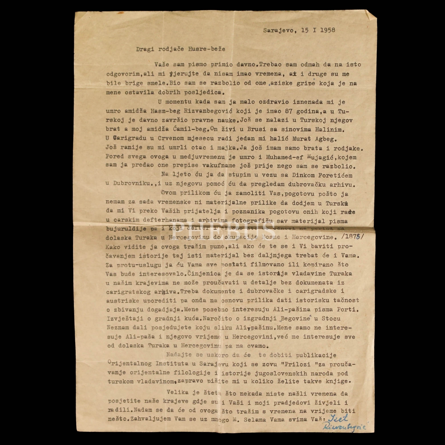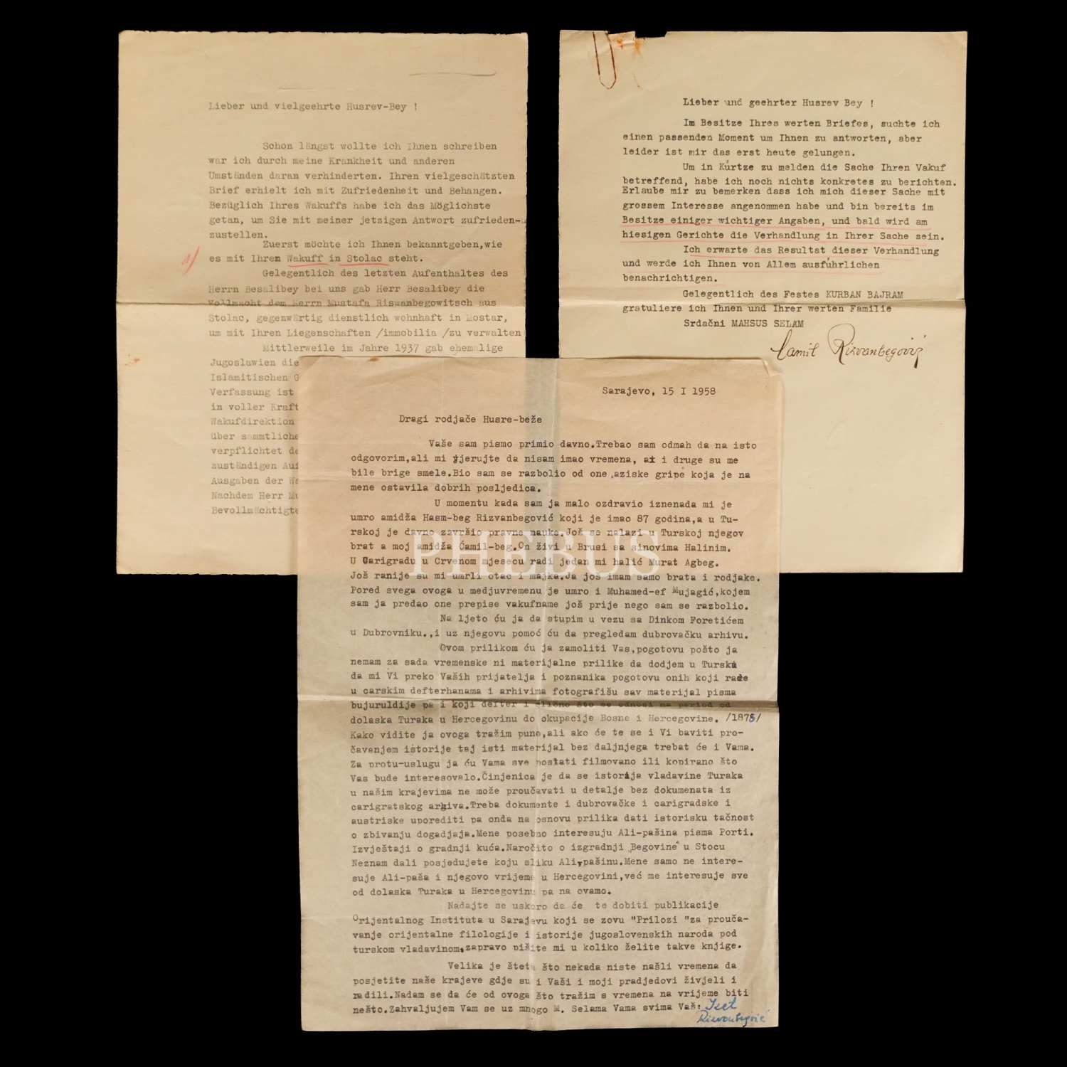 Saraybosna´da bulunan Şarkiyat Enstitüsü´nde görevli İzet Rizvanbegovic´in, Hüsrev Gerede´ye hitaben kaleme aldığı üç adet daktilo mektup, ortalama 18x23 cm...