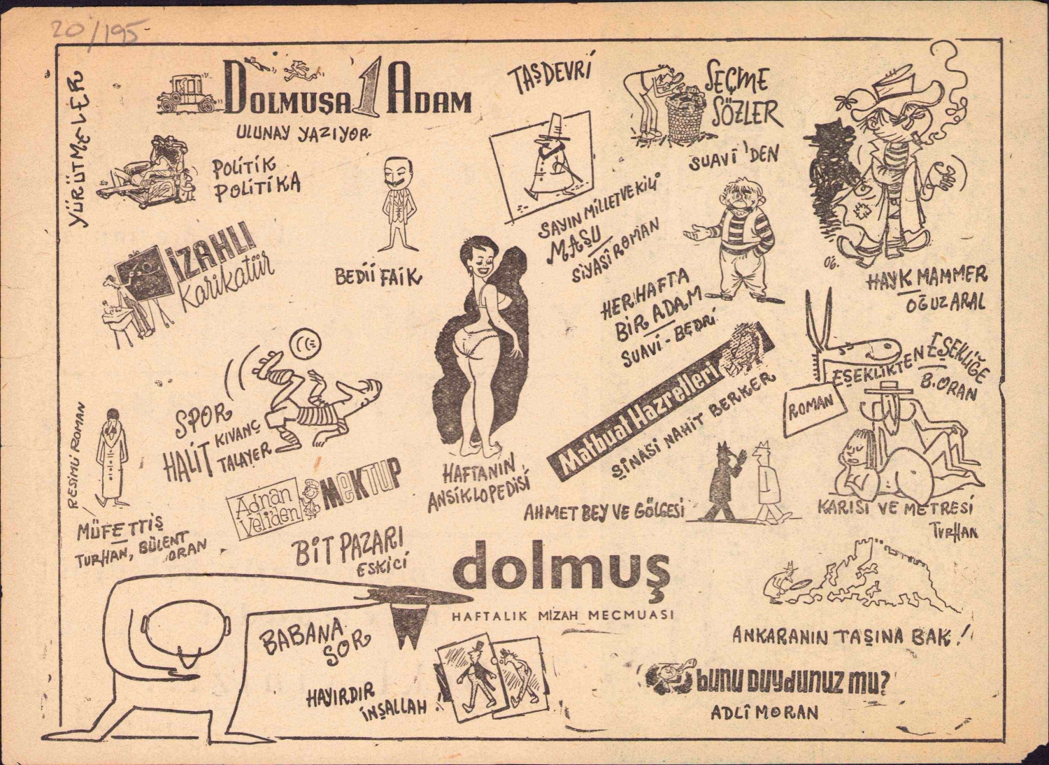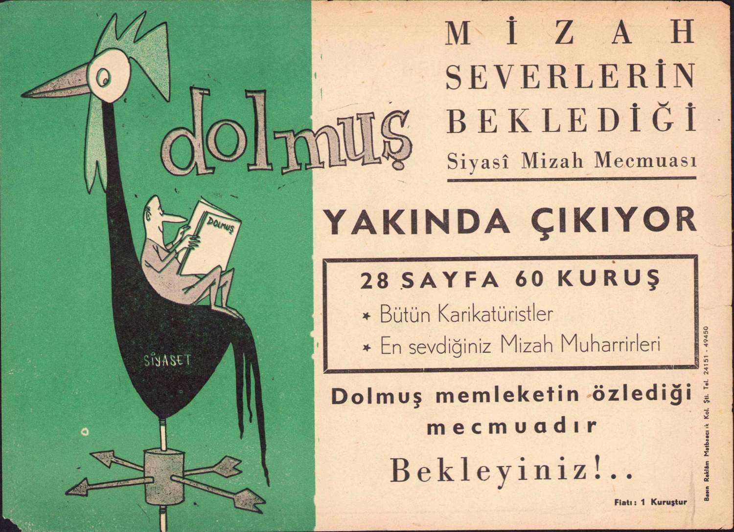 Dolmuş siyasi mizah mecmuası reklam afişi, haliyle, 26x20 cm