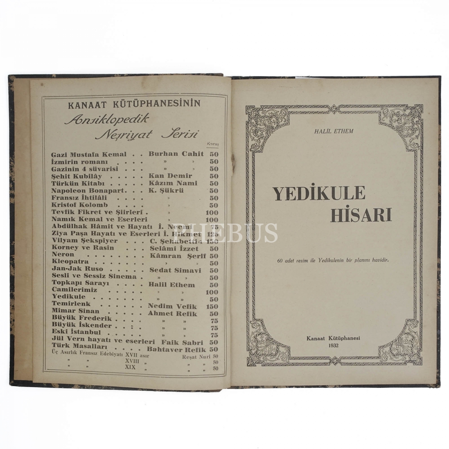 YEDİKULE HİSARI, Halil Ethem, 1932, Kanaat Kütüphanesi, 64 sayfa + 1 katlamalı plan, 23x16 cm...