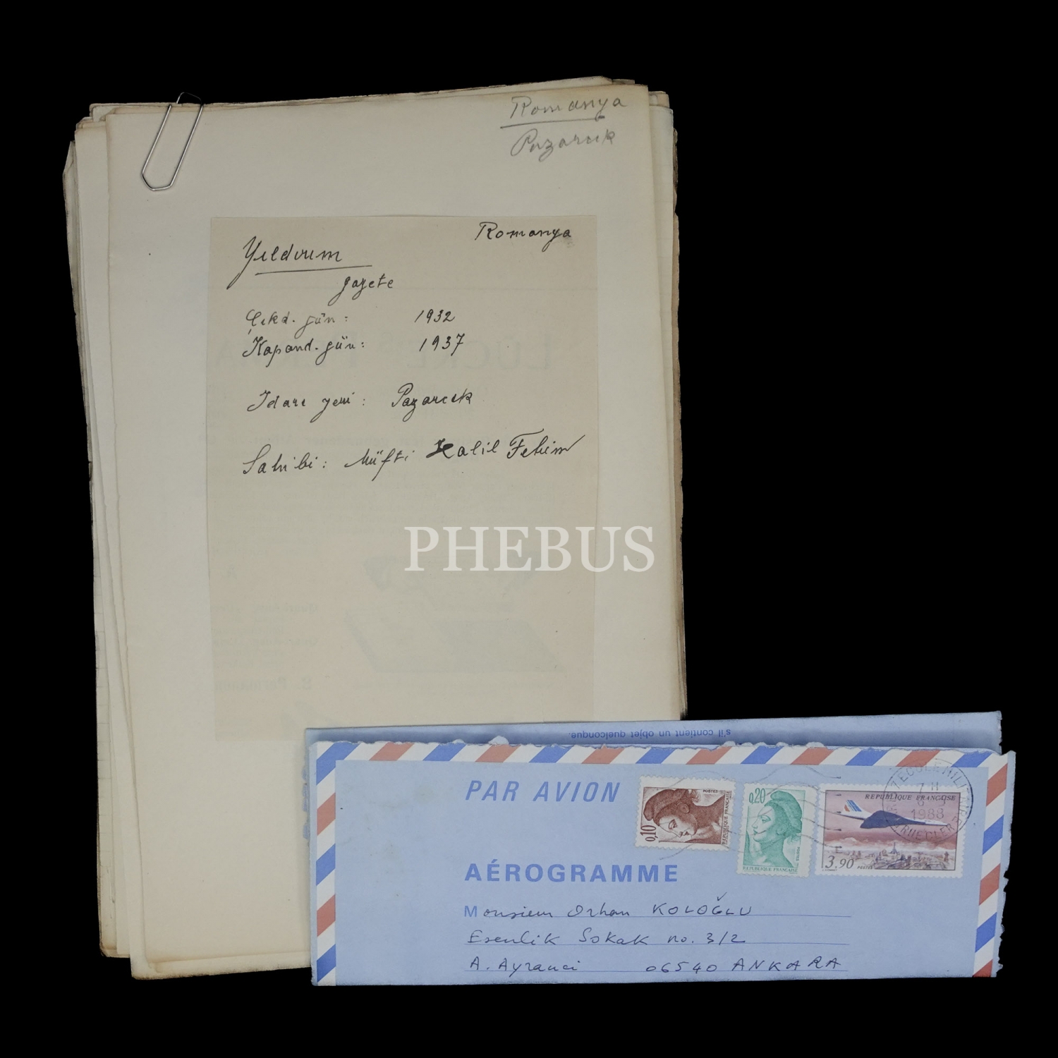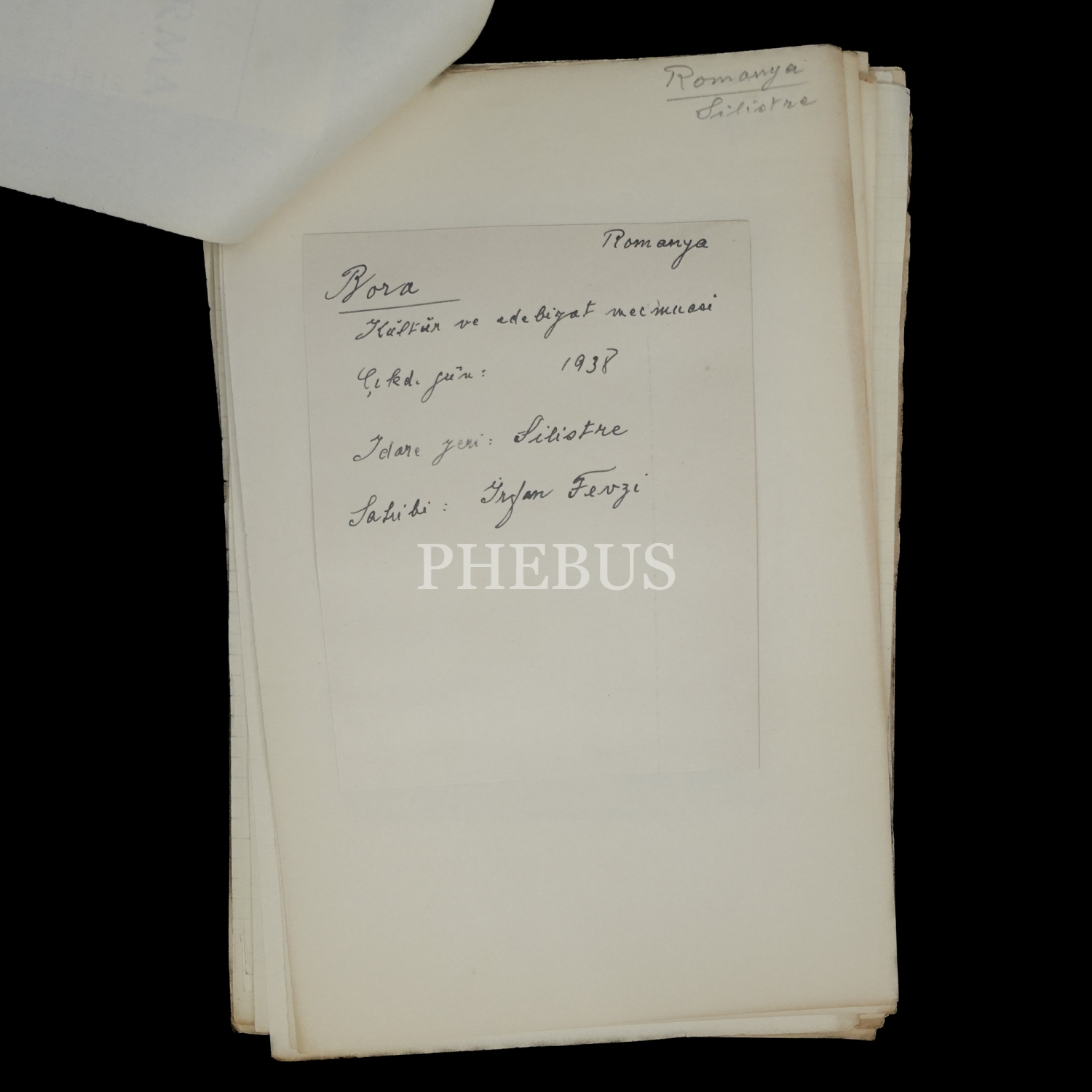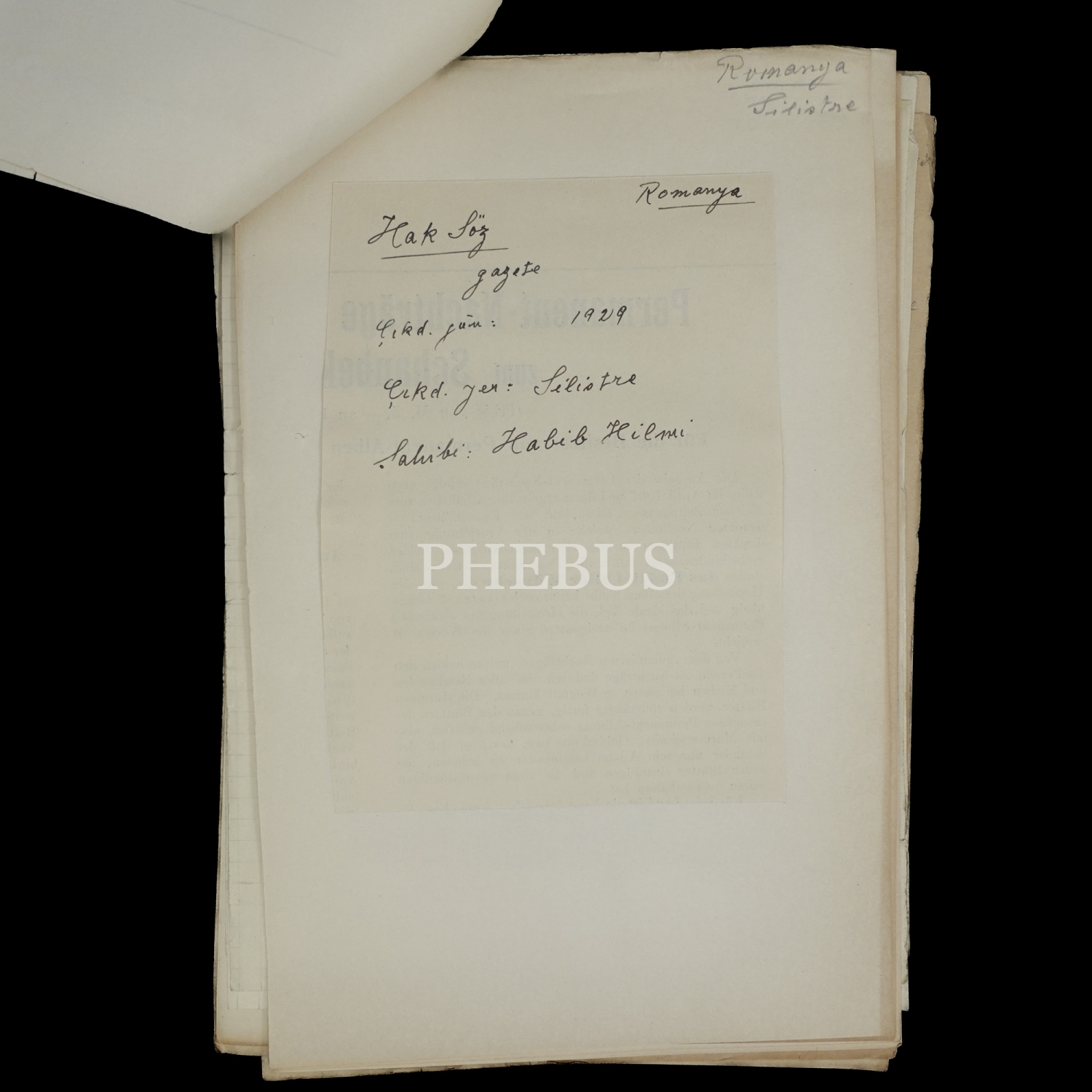 Orhan Koloğlu´nun Silistre´de çıkan Haksöz Gazetesi ile alakalı notları ve Orhan Koloğlu´na gönderilmiş Fransızca bir mektup, 25 yaprak, 23x14 cm...