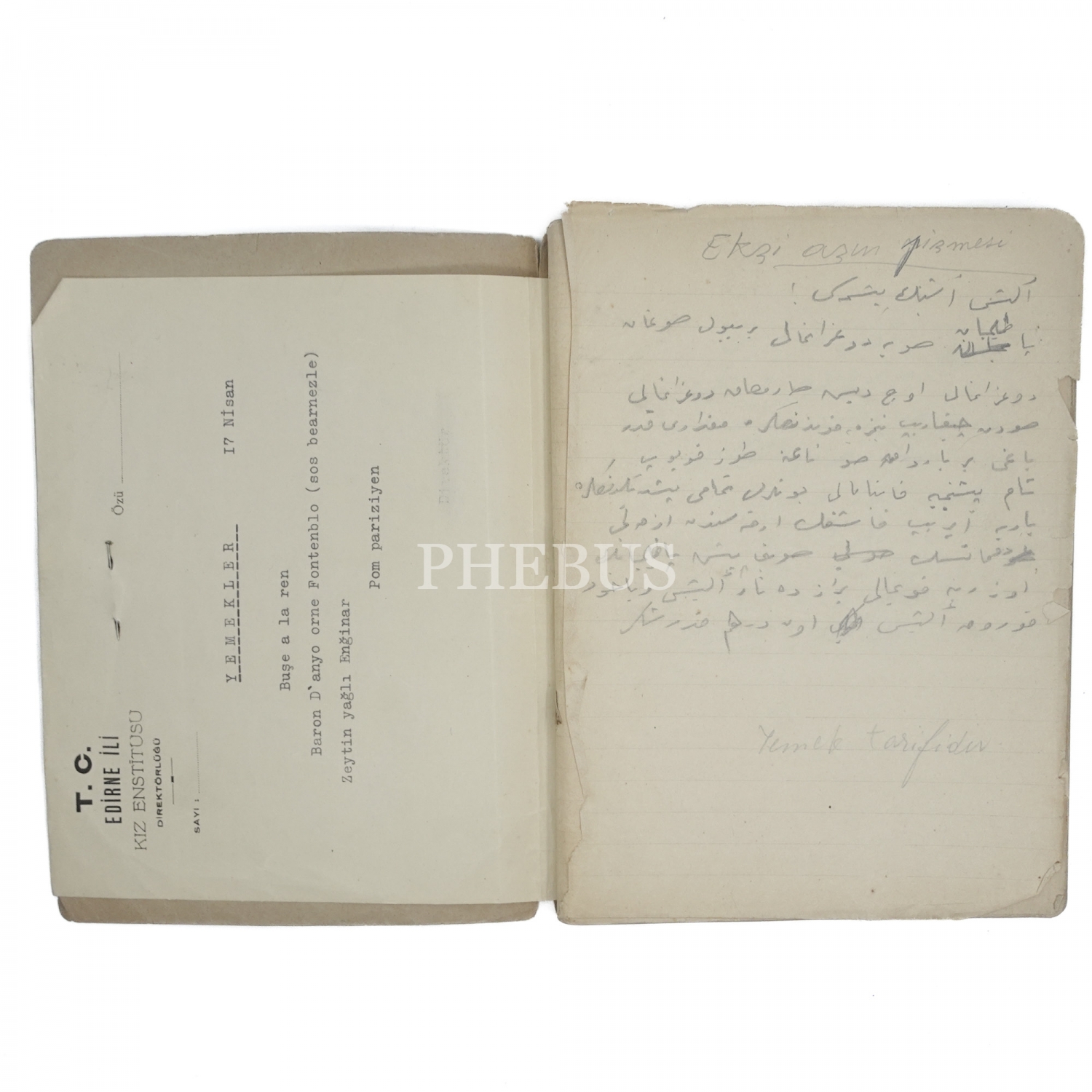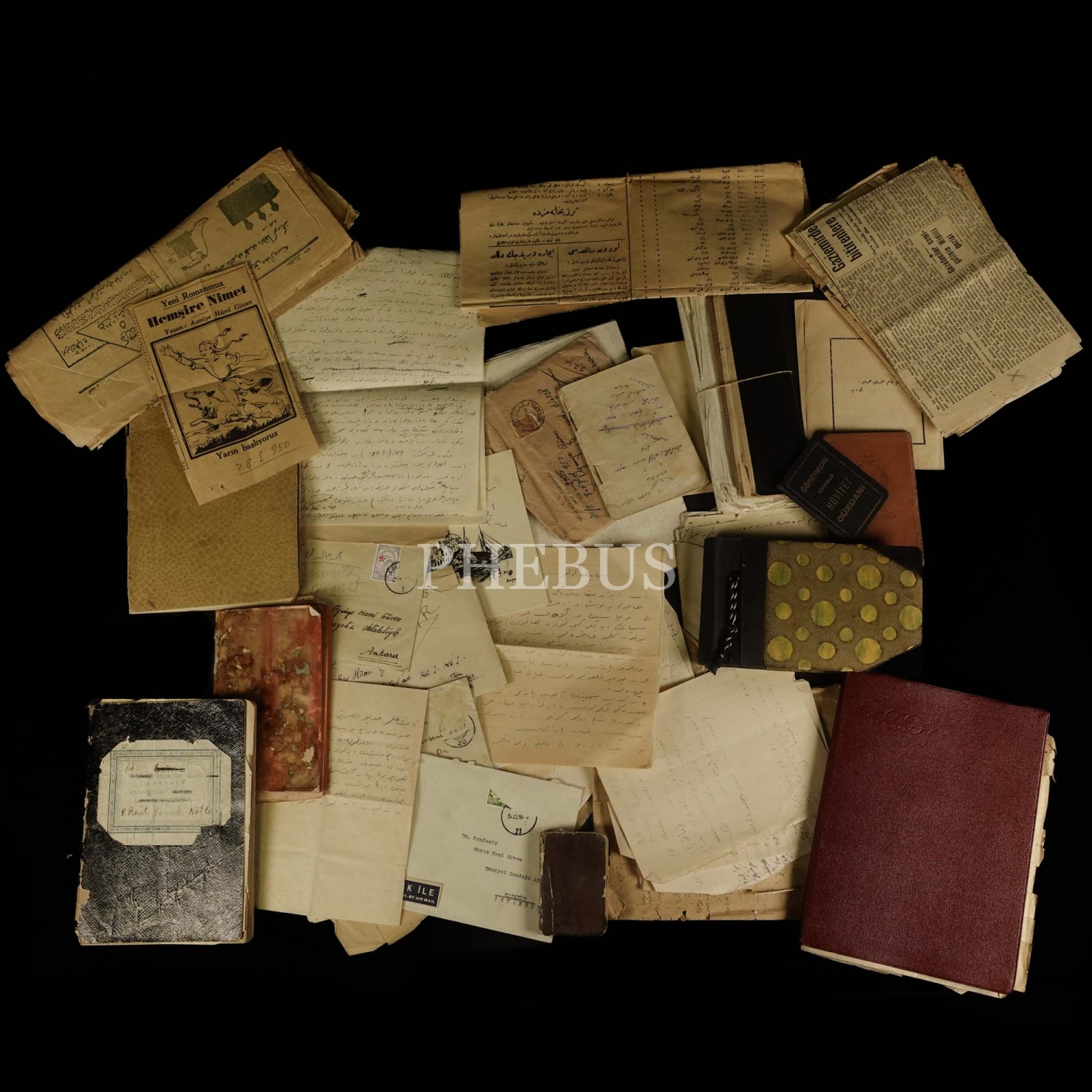 Lot içinde; yazarın yayınlanmamış bir eserinin daktilo nüshası, kendisine imzalı bir kitap, fotoğraf albümü, kimlikleri, mezar taşı yazısı, şiirleri, kendisine gönderilmiş ve kendisi tarafından kaleme alınmış mektuplar, not defterleri, gazete küpürleri, yarısından fazlası dolu 160 sayfalık bir yemek tarifleri defteri gibi parçalar yer almaktadır.