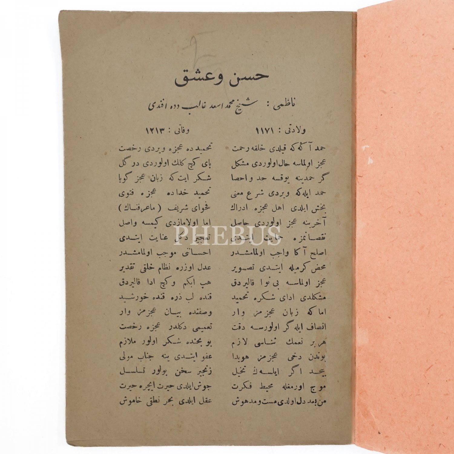 HÜSN Ü AŞK, Şeyh Galib, (hazırlayan: Tahirü'l Mevlevi), 1339, Matbaa-i Amire, 104 sayfa, 20x14 cm.