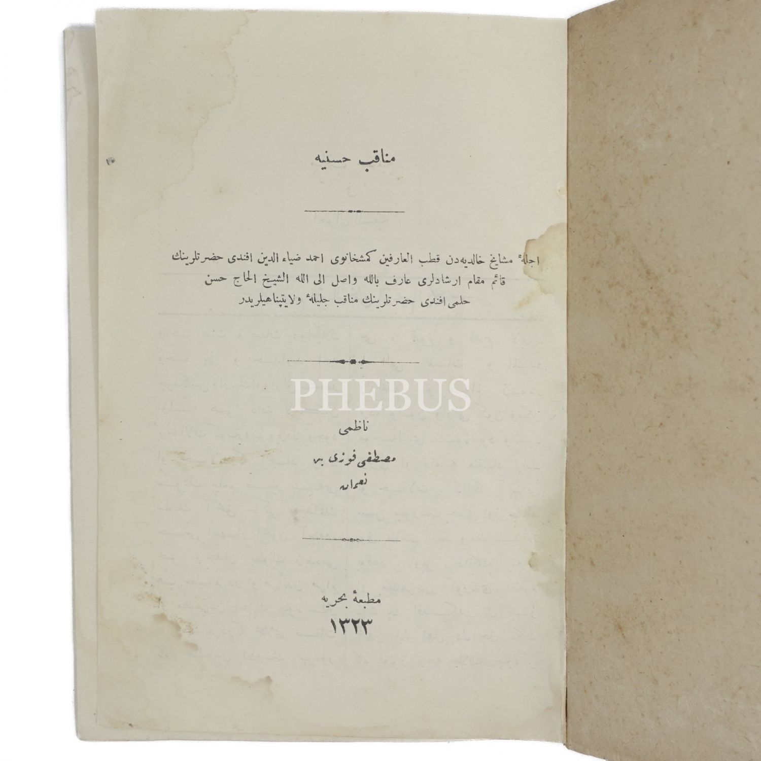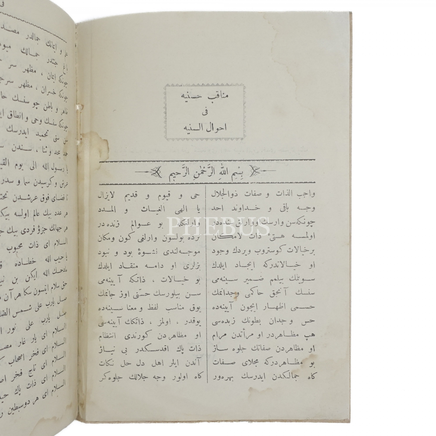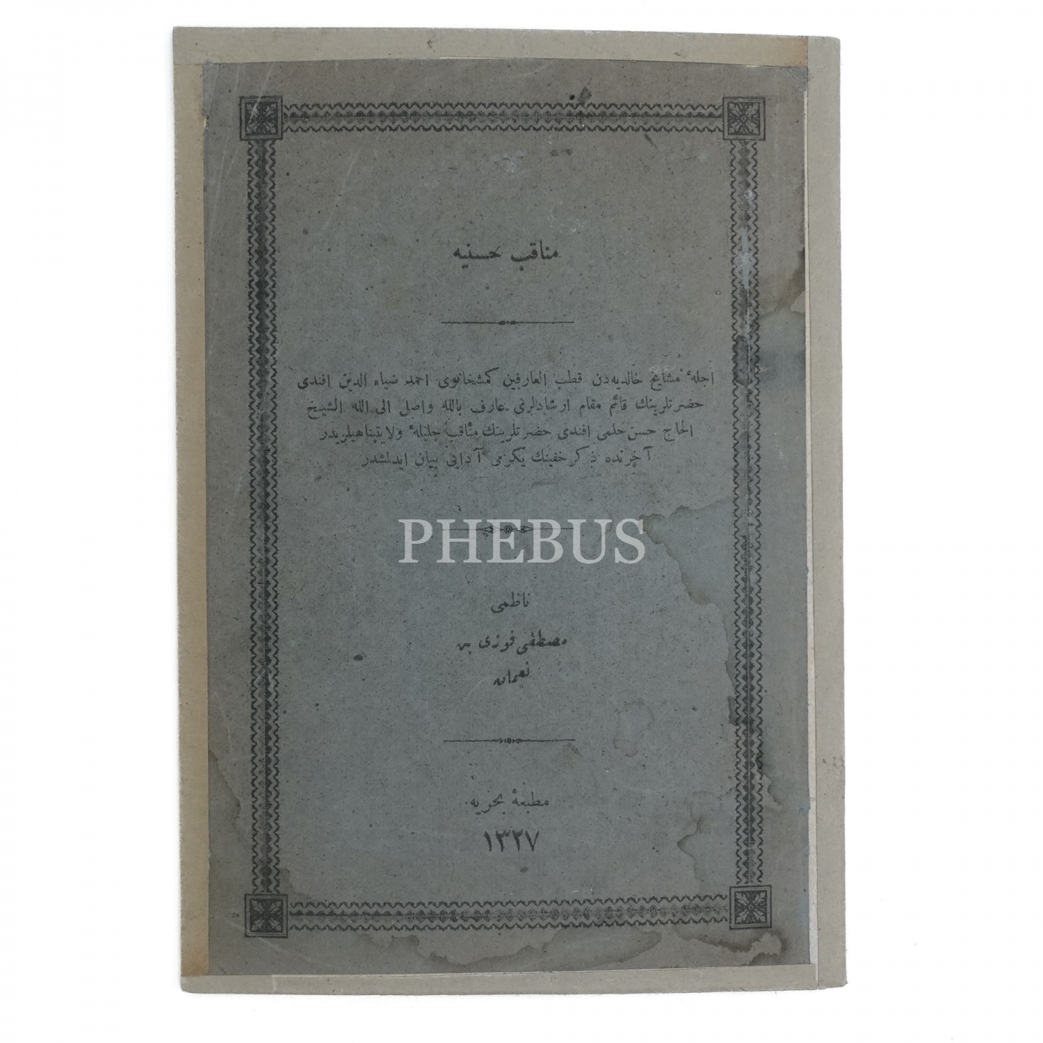 MENAKIB-I HÜSNİYE, Mustafa Fevzi b. Numan, 1327, Matbaa-i Bahriye, 48 sayfa, 19x13 cm...