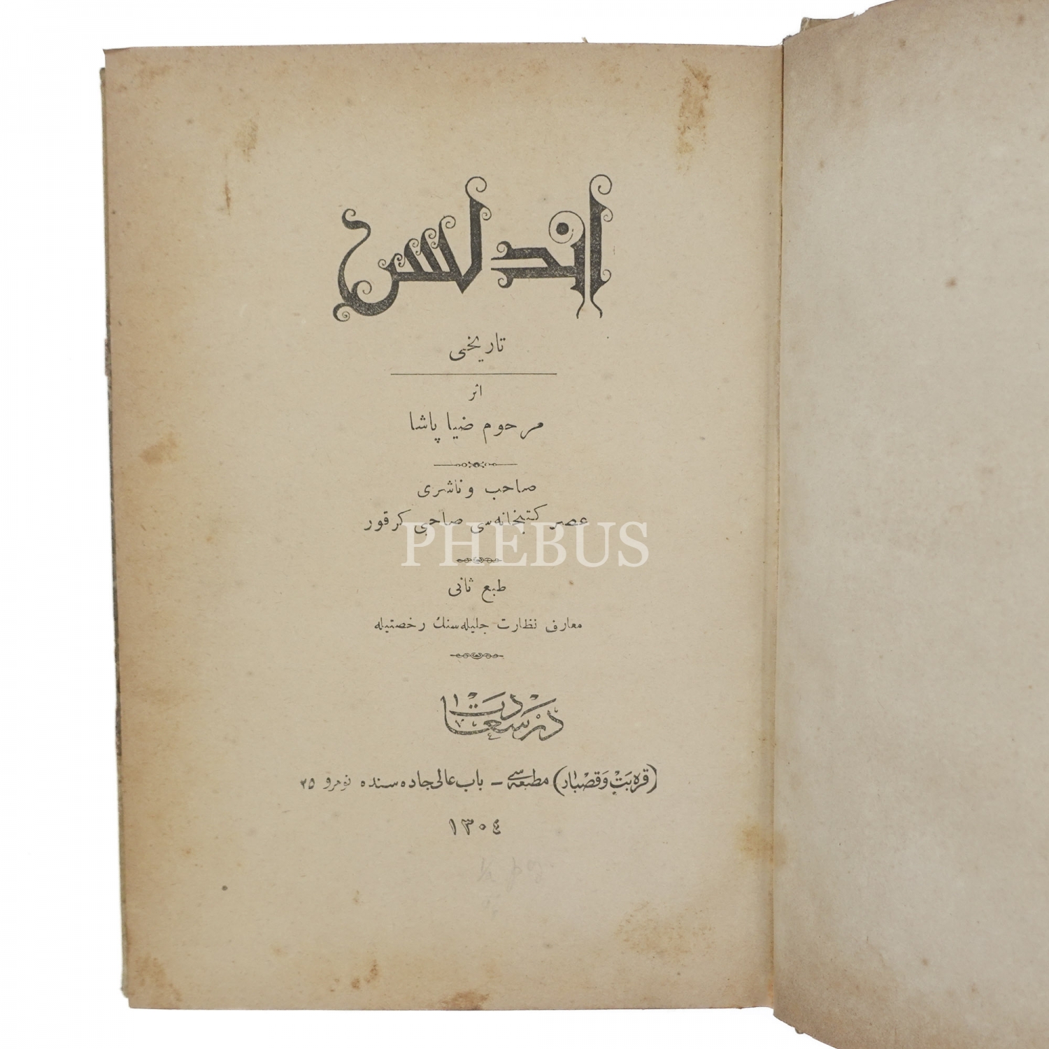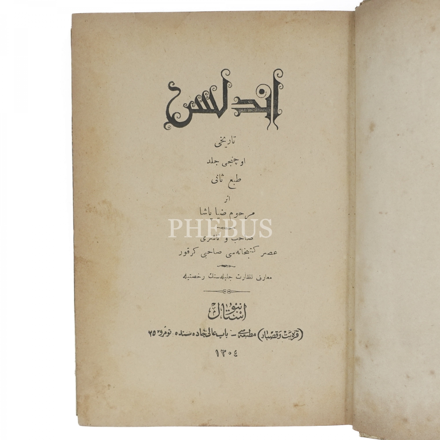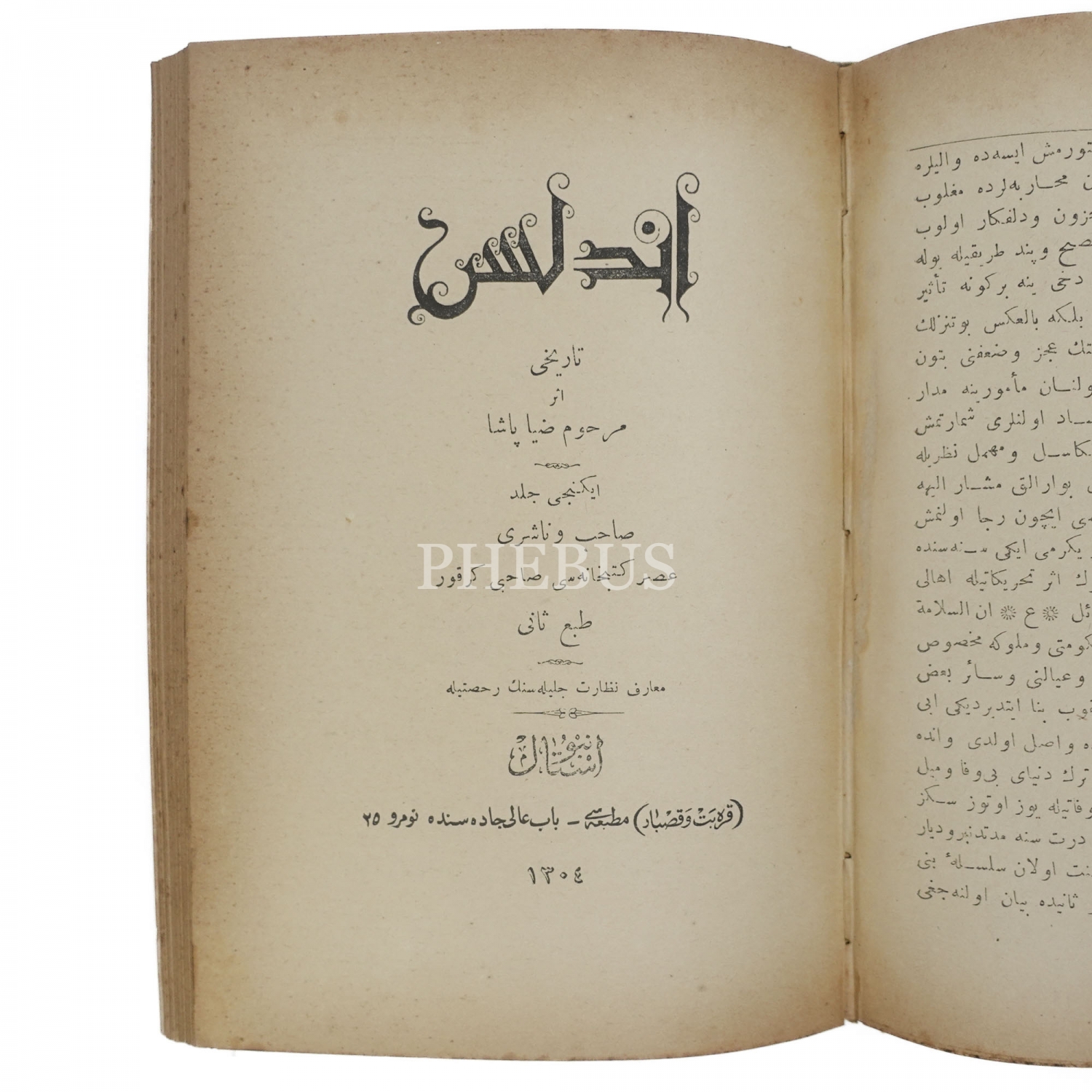 ENDÜLÜS TARİHİ, Ziya Paşa, 4 cilt takım, 2 cilt içinde, 1304-1305, Karabet ve Kasbar Matbaası, 294+148+208+119 sayfa, 20x14 cm...