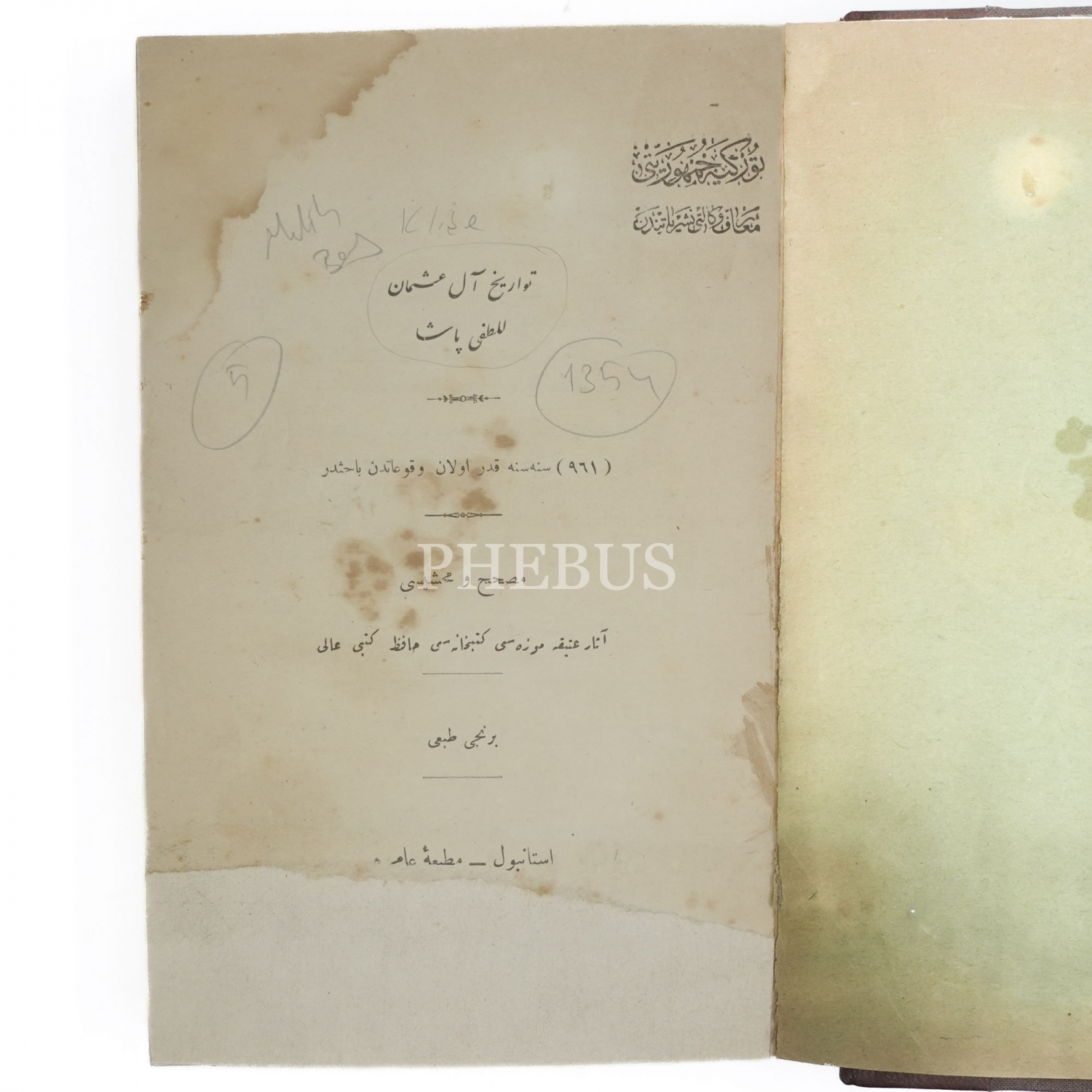 TEVÂRİH-İ ÂL-İ OSMAN, Lütfi Paşa, 1341, Matbaa-i Amire, 456 sayfa, 24x16 cm...
