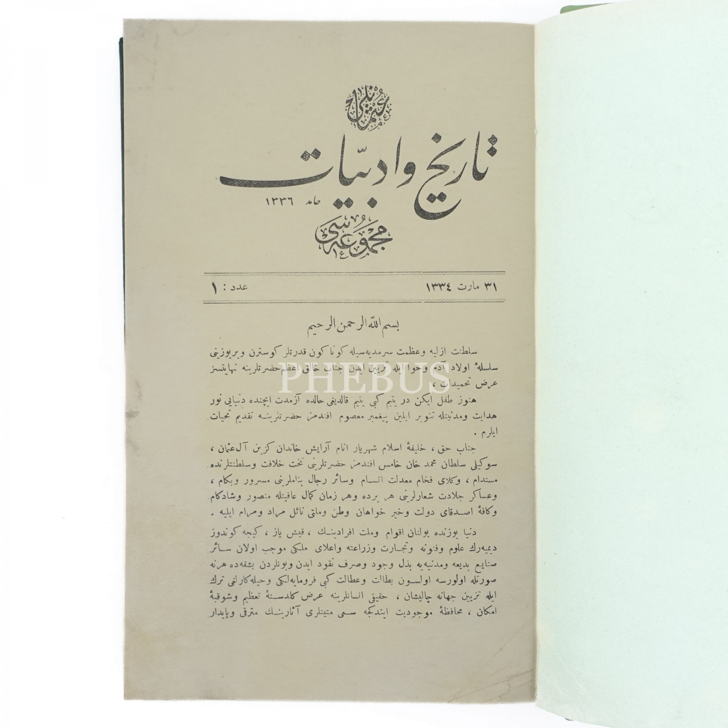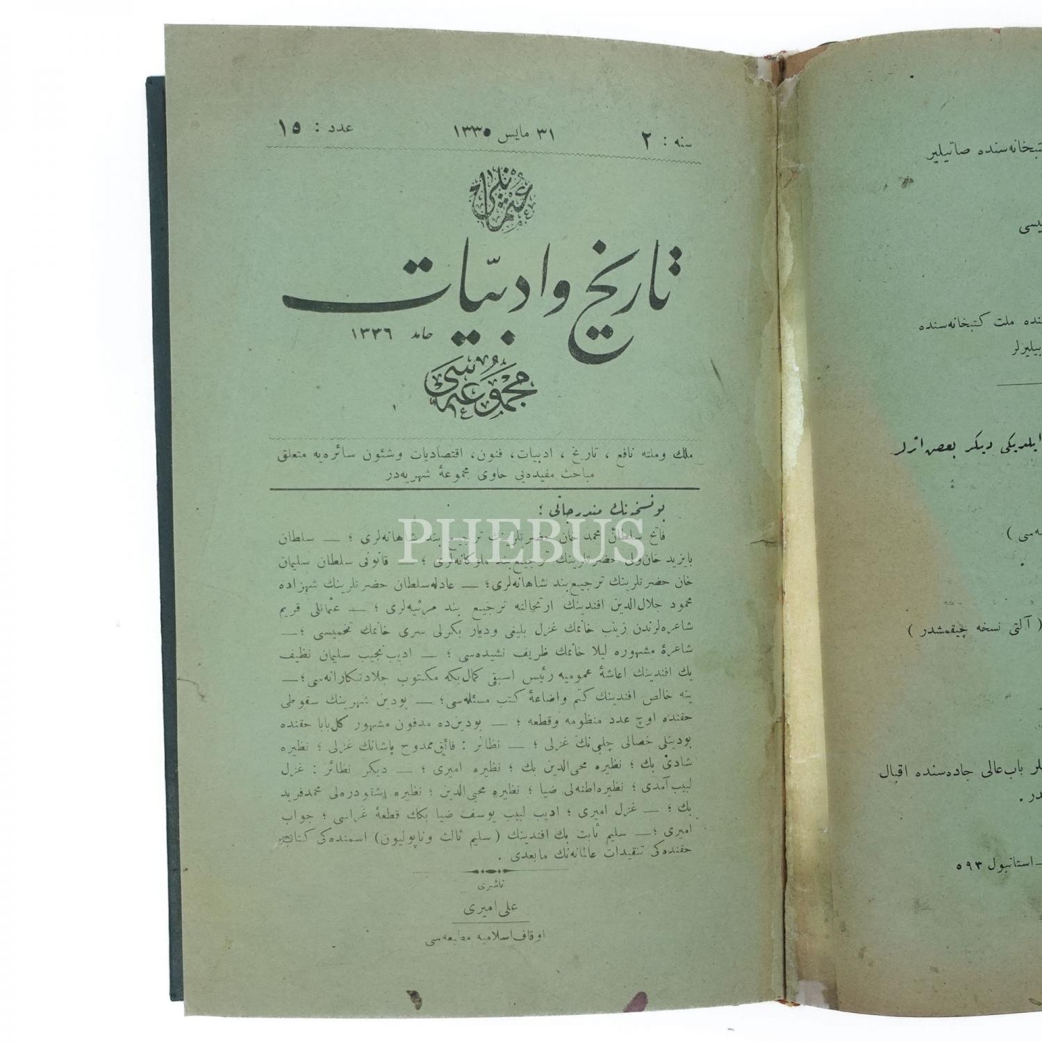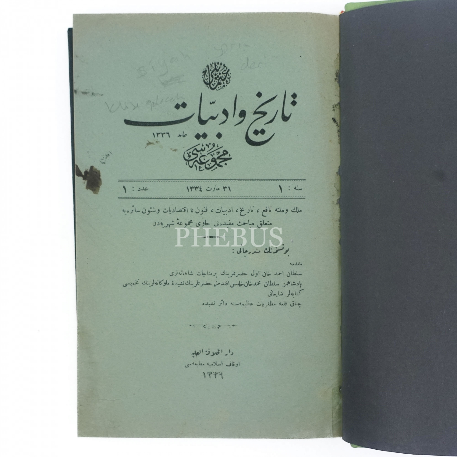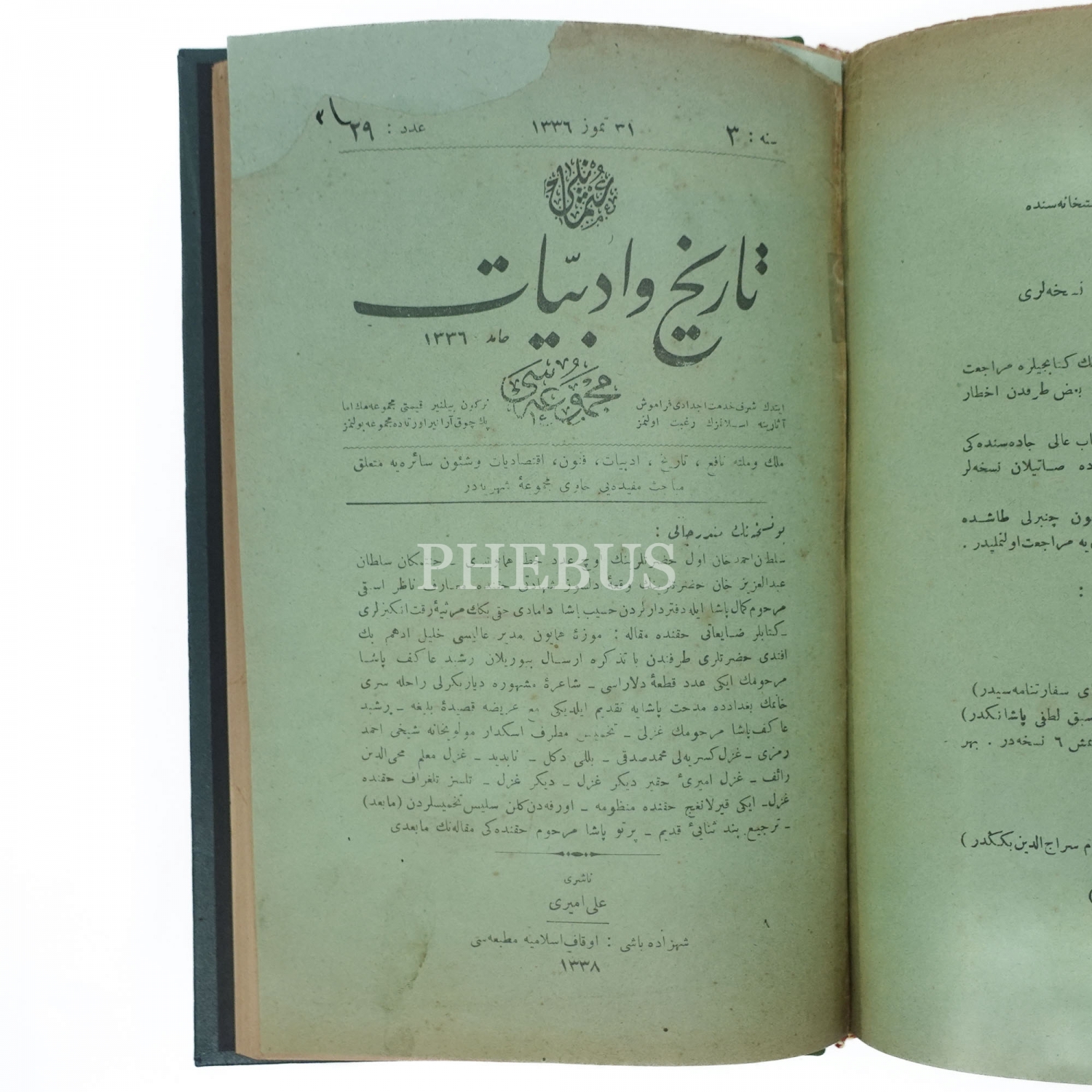 TARİH VE EDEBİYAT MECMUASI, 11 sayı bir arada ciltli (1-2-4-5-6-10-14-15-16-26-29. sayılar), 1336-1338, Evkaf-ı İslamiye Matbaası, 23x14 cm...