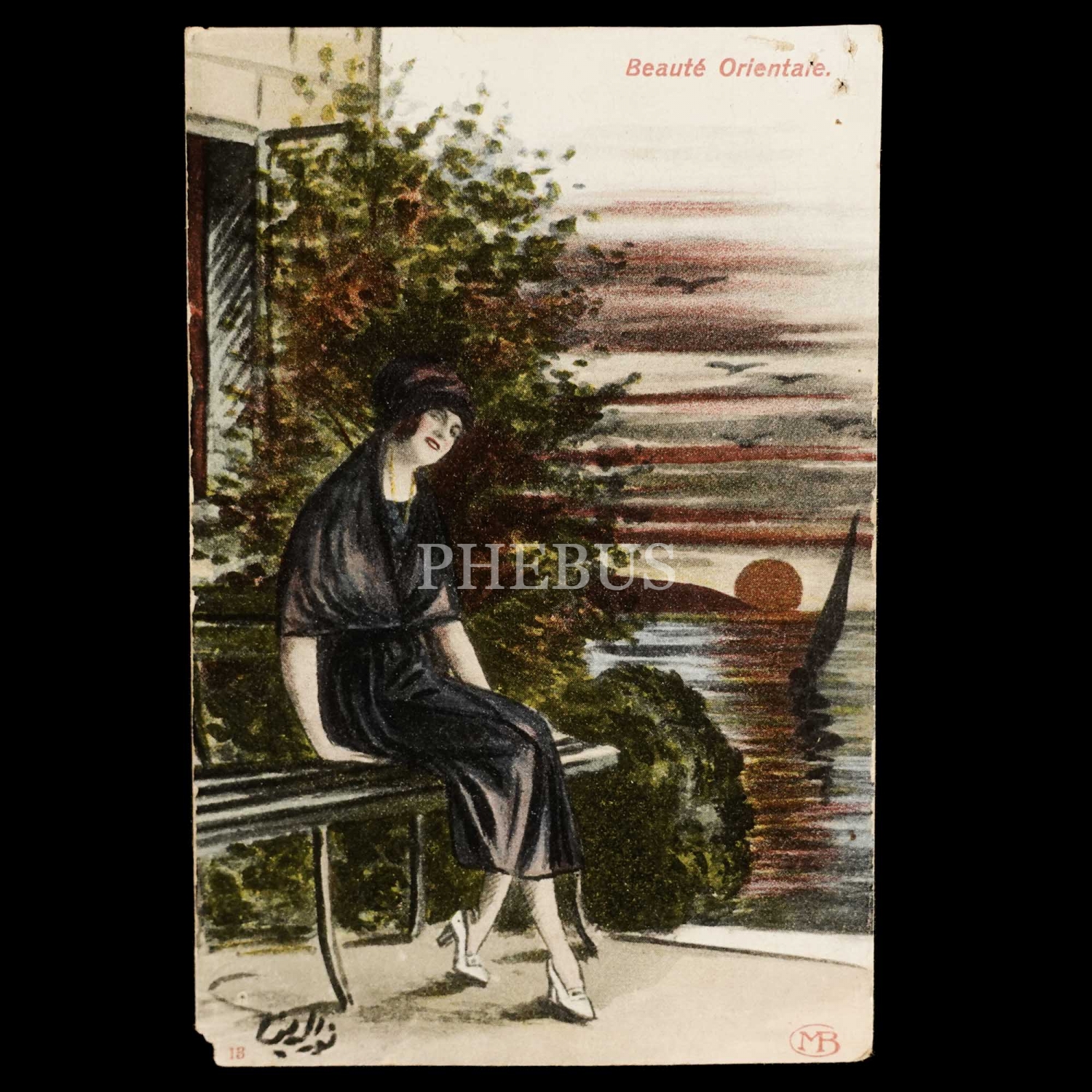 "Doğulu güzel" temalı kartpostal, çizim: Nureddin, ed. MB, 14x9 cm...