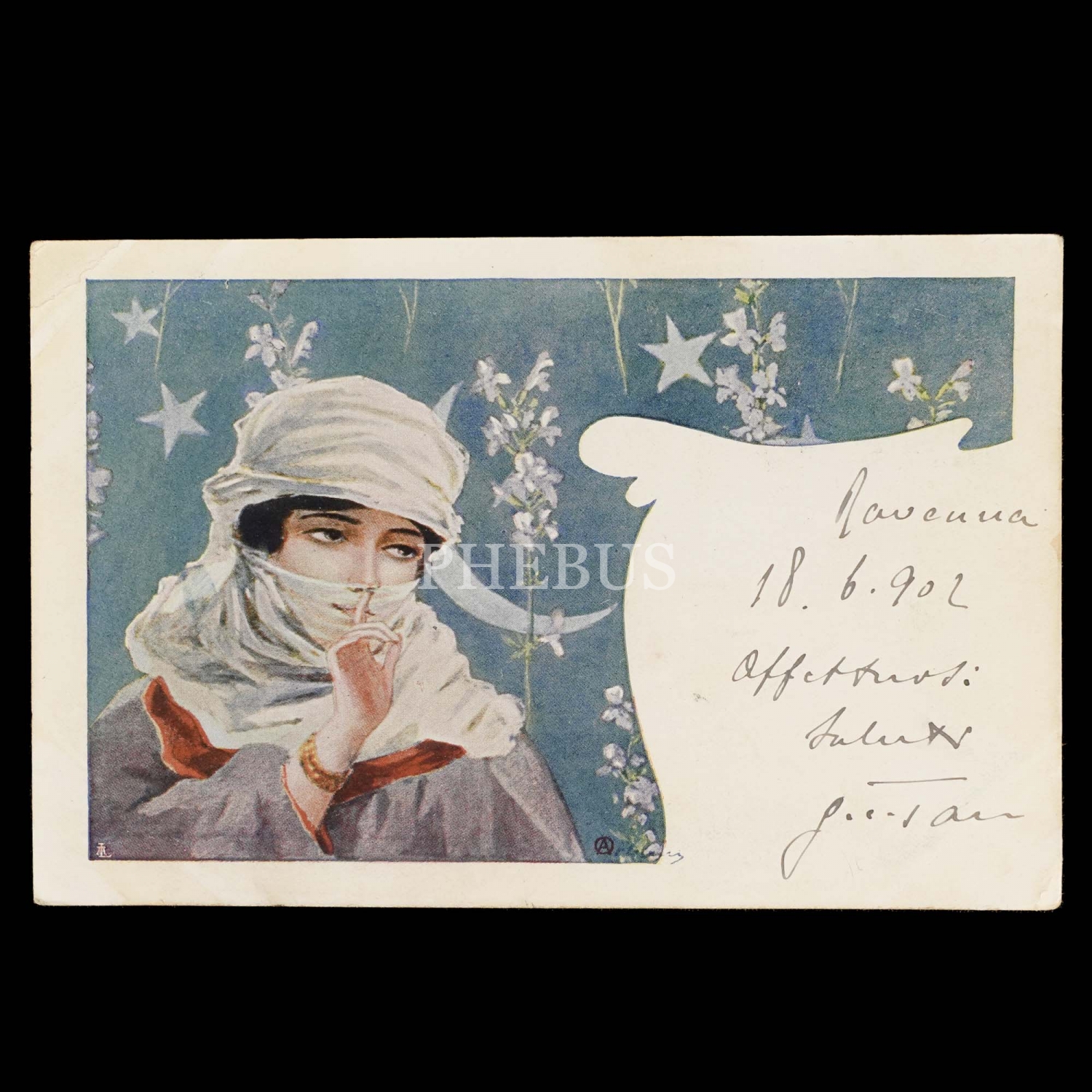 "Doğulu güzel" temalı kartpostal, ed. Nureddin, Propr. art C. Aliprandi, Milano (1901), 14x9 cm...