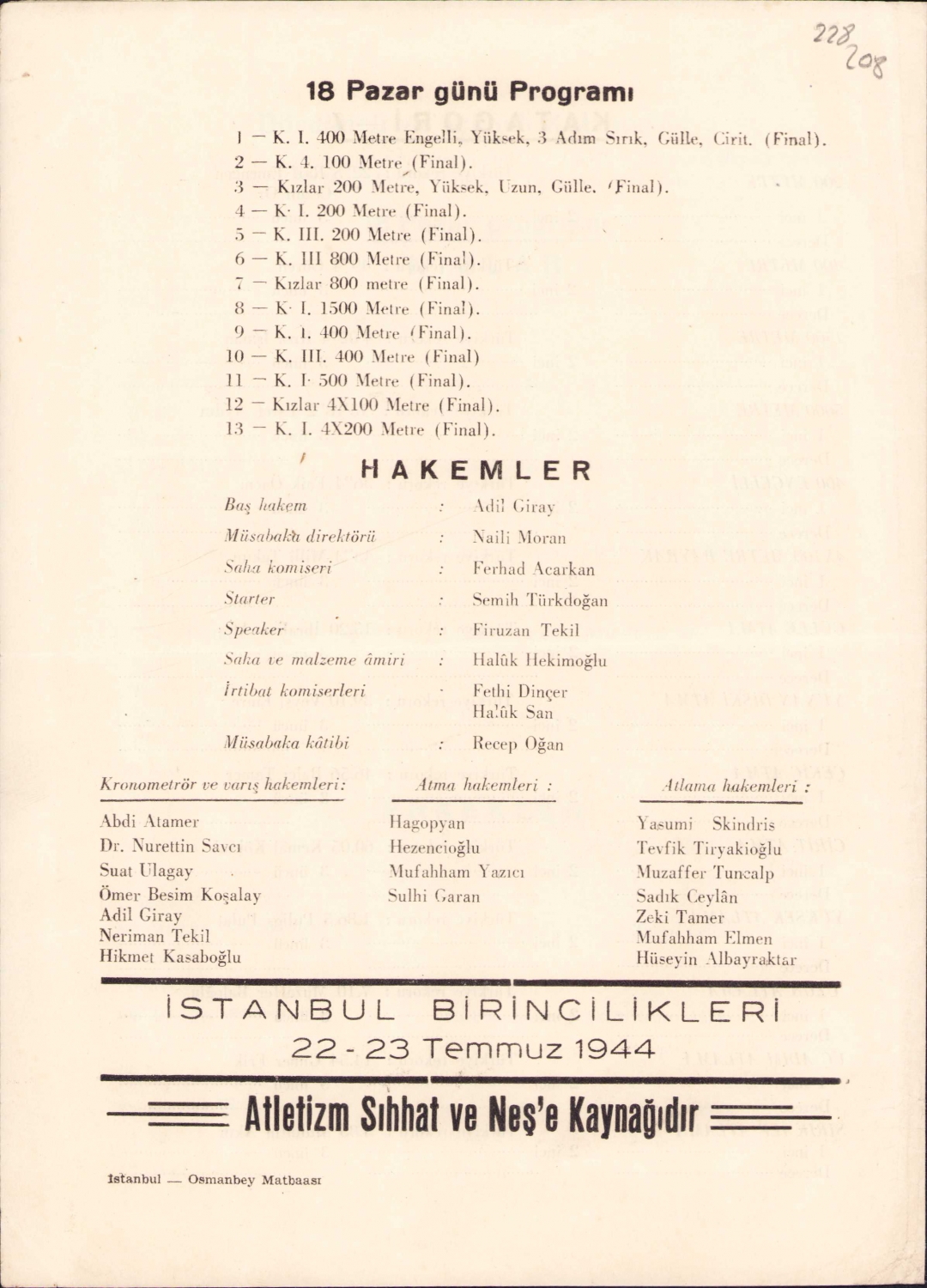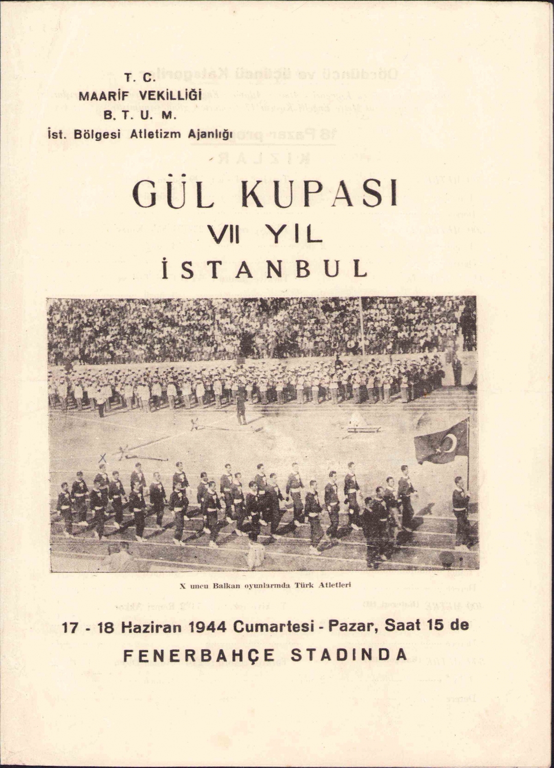 Gül Kupası VII. Yıl programı, 1944, İstanbul Fenerbahçe Stadı, 4 sayfa, 20x28 cm
