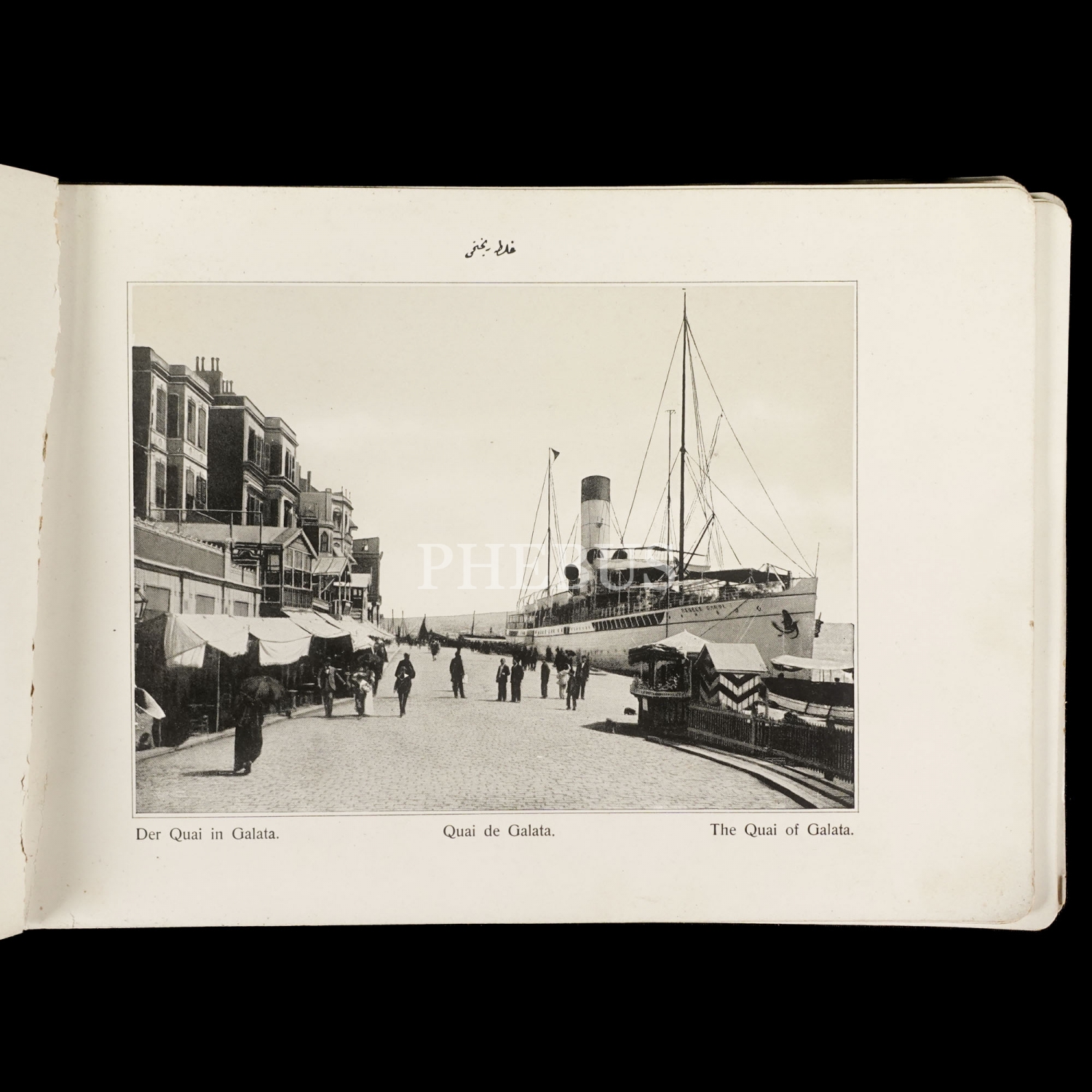 Albüm içinde yer alan manzaralar: 1) Galata Rıhtımı 2) Karaköy Limanı 3) Yeni Galata Köprüsü (Karaköy´den bakış) 4) Yeni Galata Köprüsü (Eminönü´nden bakış) 5) Yeni Galata Köprüsü ve Haliç 6) Sarayburnu 7) Kız Kulesi 8) Ahırkapı Feneri ve Suriçi 9) Haliç ve tersaneler 10) Haliç´e panoramik bakış 11) Unkapanı Köprüsü ve Haliç 12) Kapalıçarşı 13) Galata Kulesi 14) Dolmabahçe Sarayı 15) Ortaköy Camii 16) Göksu Deresi ve Anadolu Hisarı 17) Boğaziçi´ne panoramik bakış 18) Büyükdere Sahili 19) Küçüksu Kasrı 20) Büyükada 21) Rumeli Hisarı 22) Kağıthane Deresi 23) Yedikule ve Altın Kapı 24) Beyazıt Camii 25) Çemberlitaş 26) Ayasofya Camii 27) Ayasofya Camii´nin içi 28) Alman Çeşmesi 29) Hipodrom ve Sultanahmet Camii 30) Dikilitaş 31) Eyüp Sultan 32) Mevlevi Dervişler 33) Sultan Mehmed Reşad´ın Dolmabahçe´de düzenlenen Cuma Selamlığı 34) Yıldız Sarayı ve Yıldız Hamidiye Camii 35) Yıldız Sarayı 36) Karacaahmet Mezarlığı *Fotoğraflardan bir kısmı sırttan ayrılmıştır.