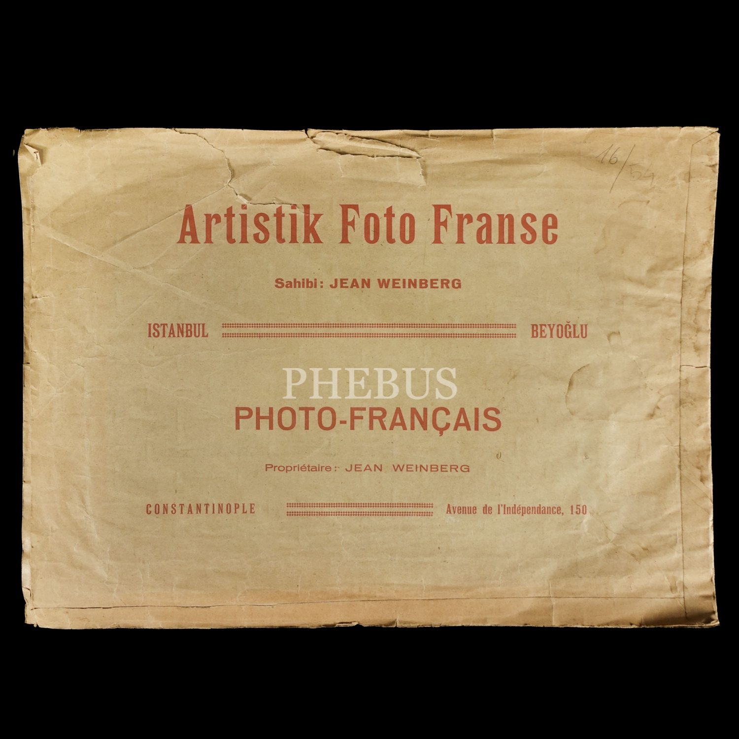 Jean Weinberg´in Beyoğlu´nda bulunan Artistik Foto Franse isimli stüdyosunun, Türkçe - Fransızca reklamlı büyük boy fotoğraf muhafaza zarfı, 42x30 cm...
