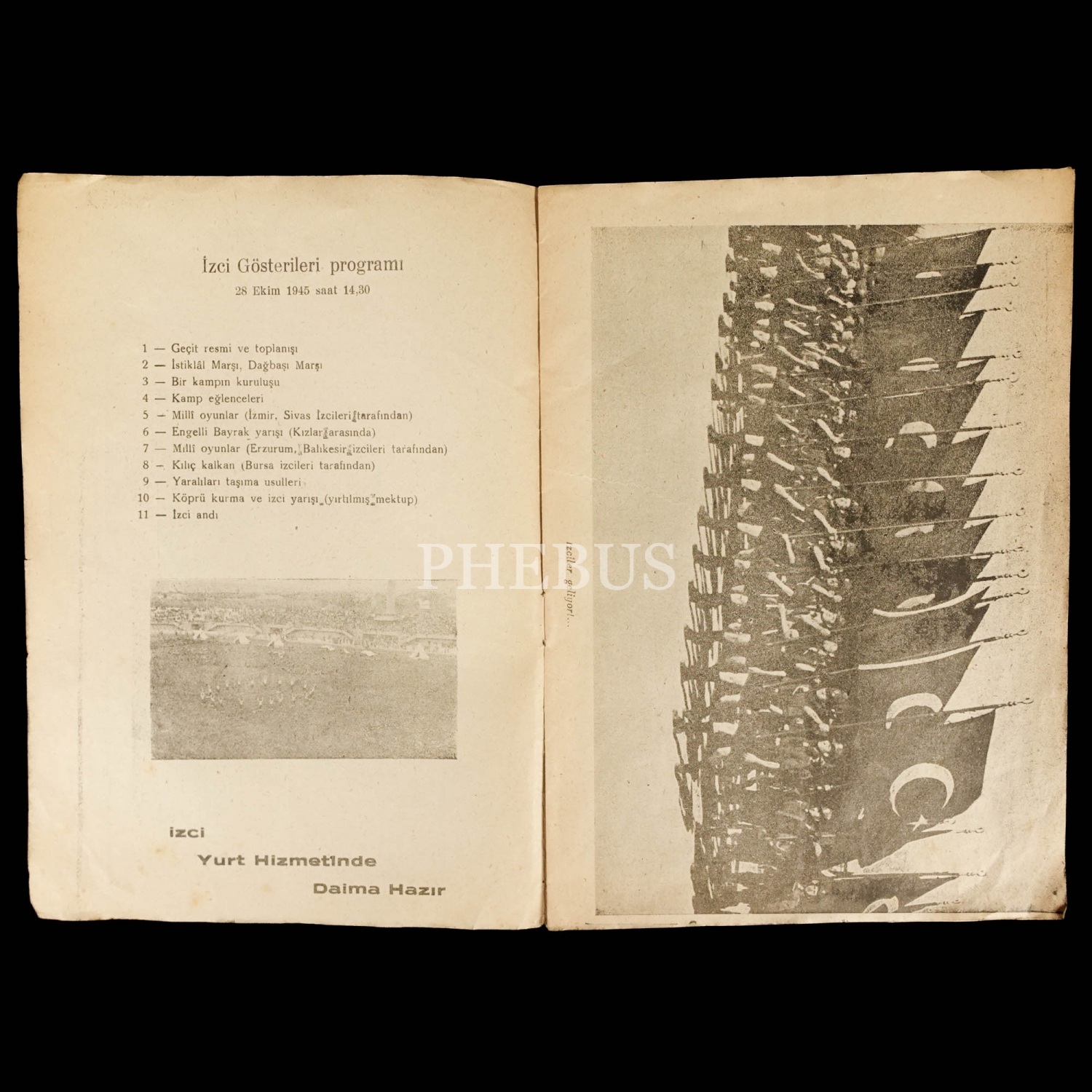 1945 İZCİ GÖSTERİLERİ, T.C. Millî Eğitim Bakanlığı Beden Eğitimi Genel Müdürlüğü Yayım Müdürlüğü, 16 sayfa, 17x24 cm...