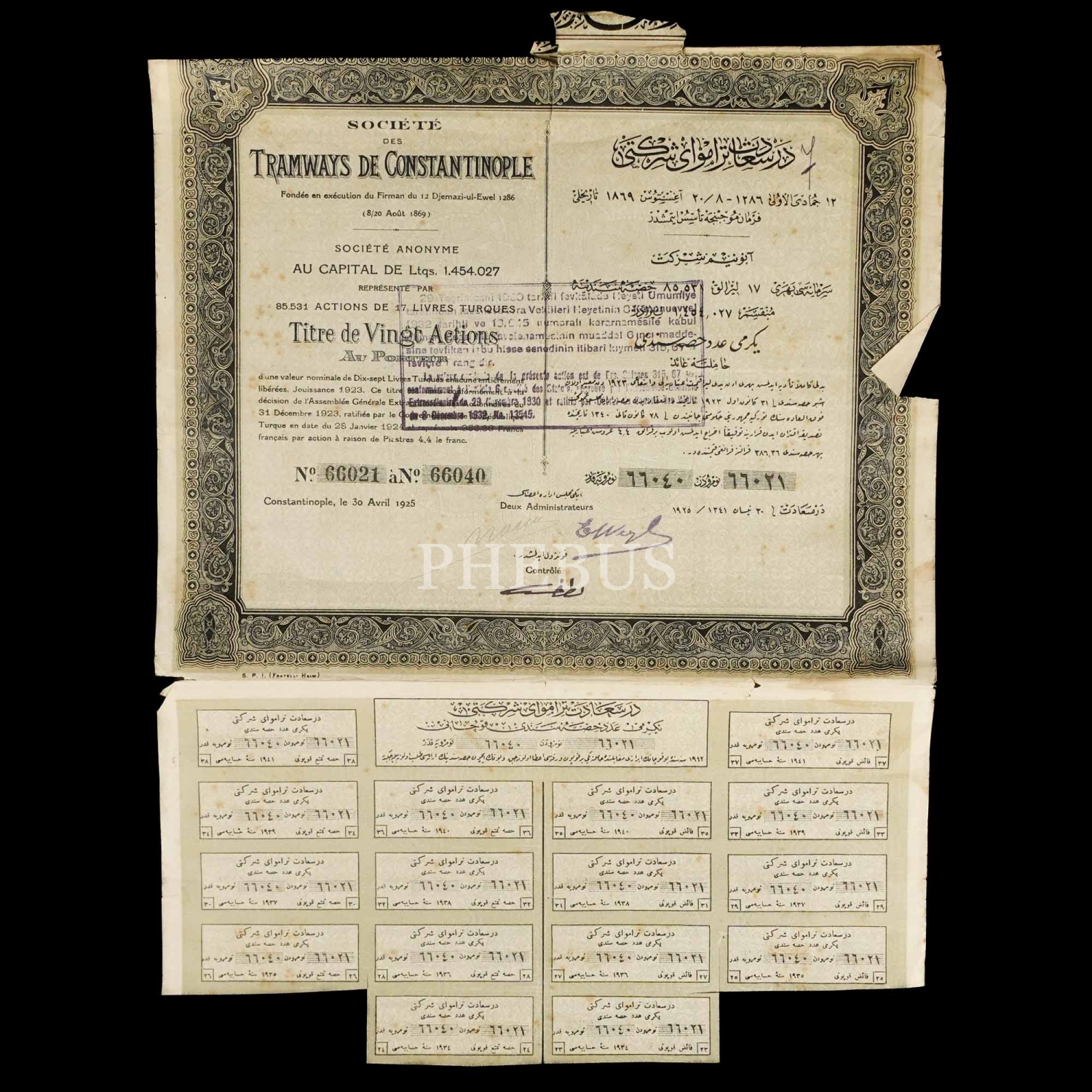 Dersaadet Tramvay Şirketi (Societe des Tramways de Constantinople) hisse senedi, 1925, 30x37 cm...
