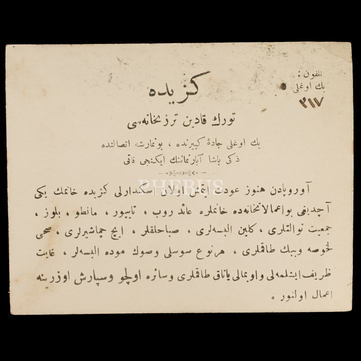 Güzide Türk Kadın Terzihanesi´nin iş yeri kartı, 12x10 cm...