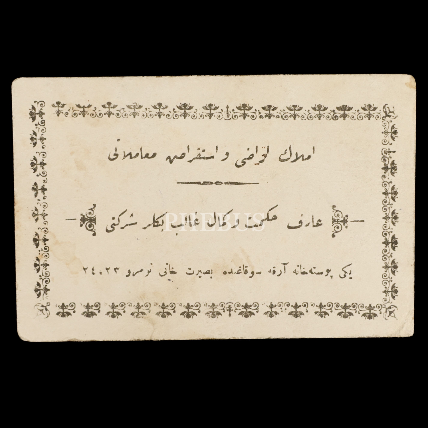 Emlak İkrazı ve İstikraz Muamelatı Arif Hikmet ve Kemal Galip Beyler Şirketi´nin iş yeri kartı, 11x7 cm...