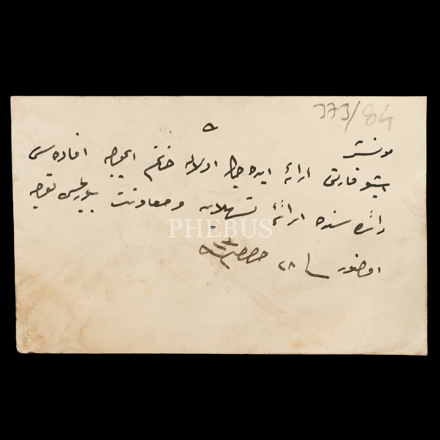 Kartvizitin arka yüzünde, "Monşer, işbu kartviziti irae edecek olan hanım için ifadesi dairesinde iraen teslimiyet ve muavenet buyurulmaıs tevcih olunur. 28 Haziran 1916" notu yer almaktadır.