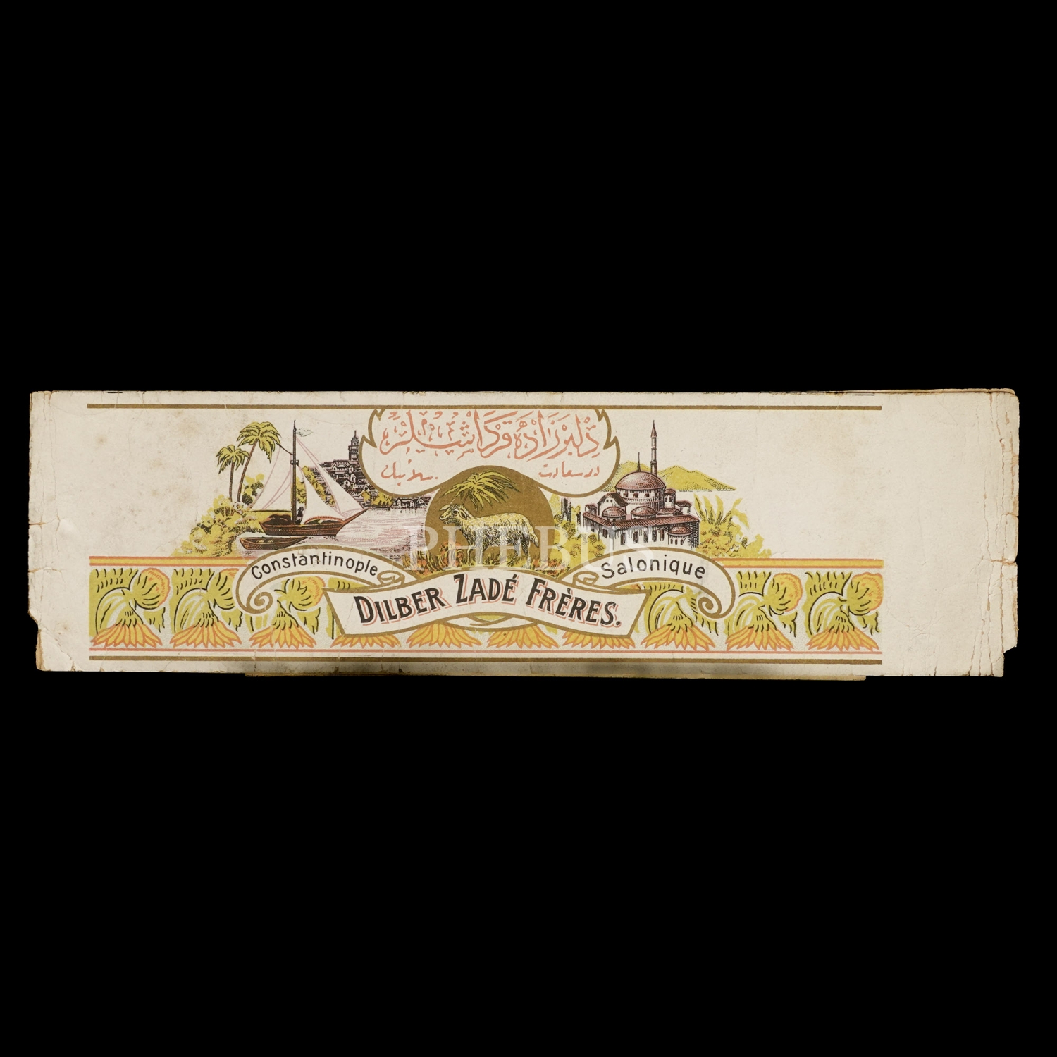 "Dilberzade Kardeşler (İstanbul - Selanik)" yazılı iki dilde etiket, 23x7 cm...