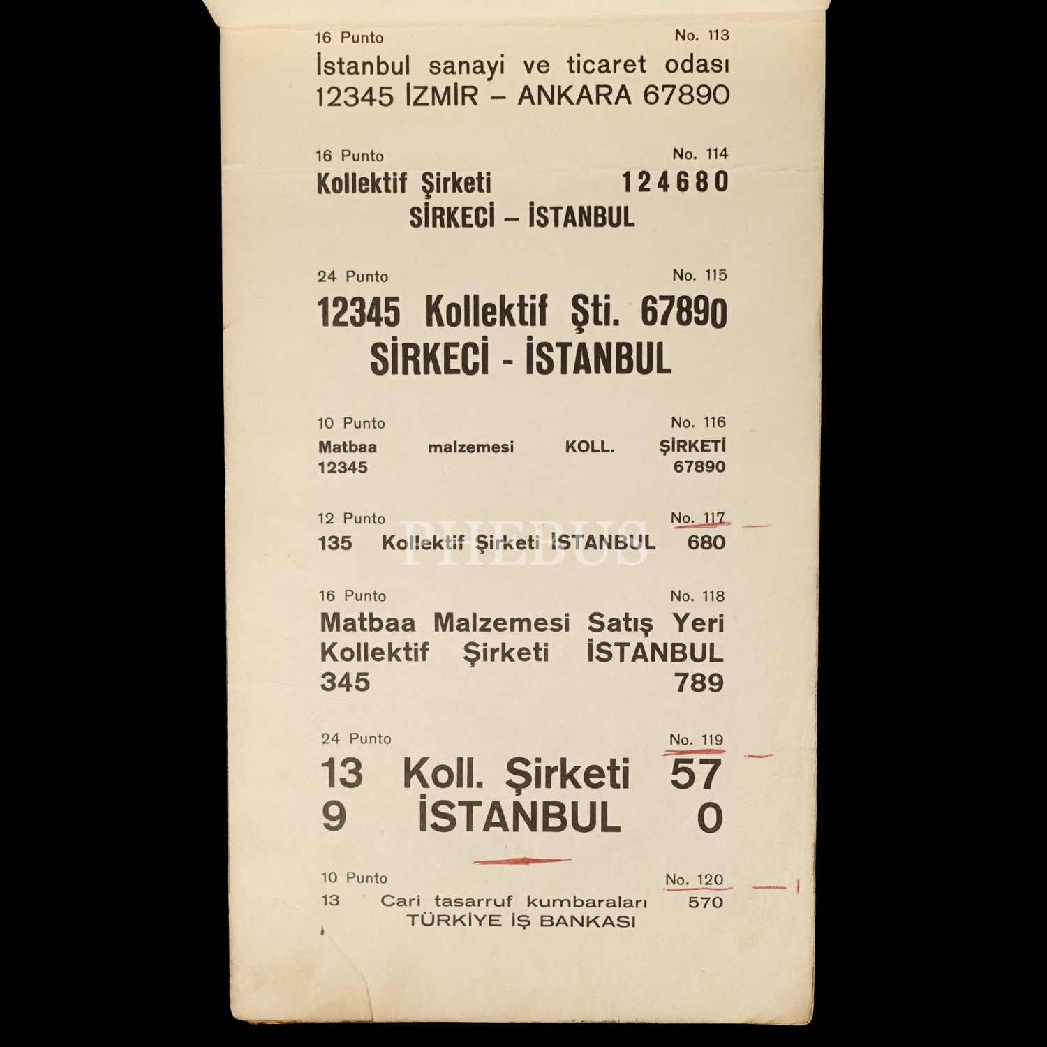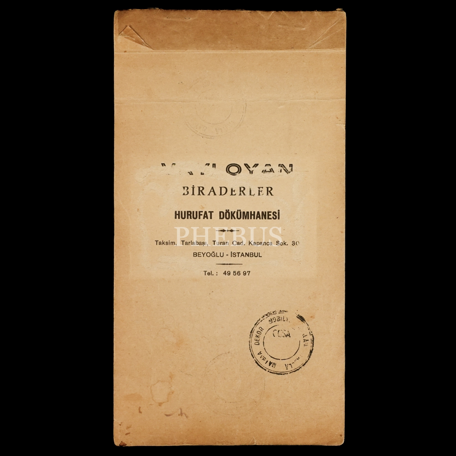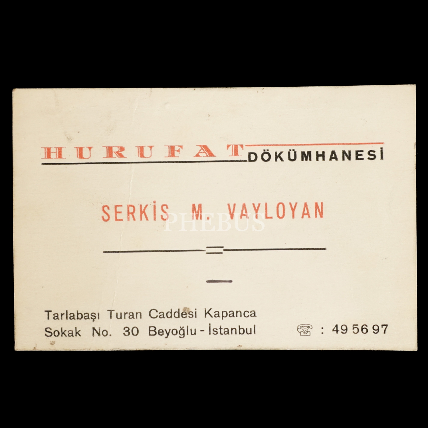 Vayloyan Biraderler Hurufat Dökümhanesi´ne ait numune kataloğu ve Serkis M. Vayloyan´a ait kartvizit, katalog 13x25 cm, kartvizit 10x7 cm...