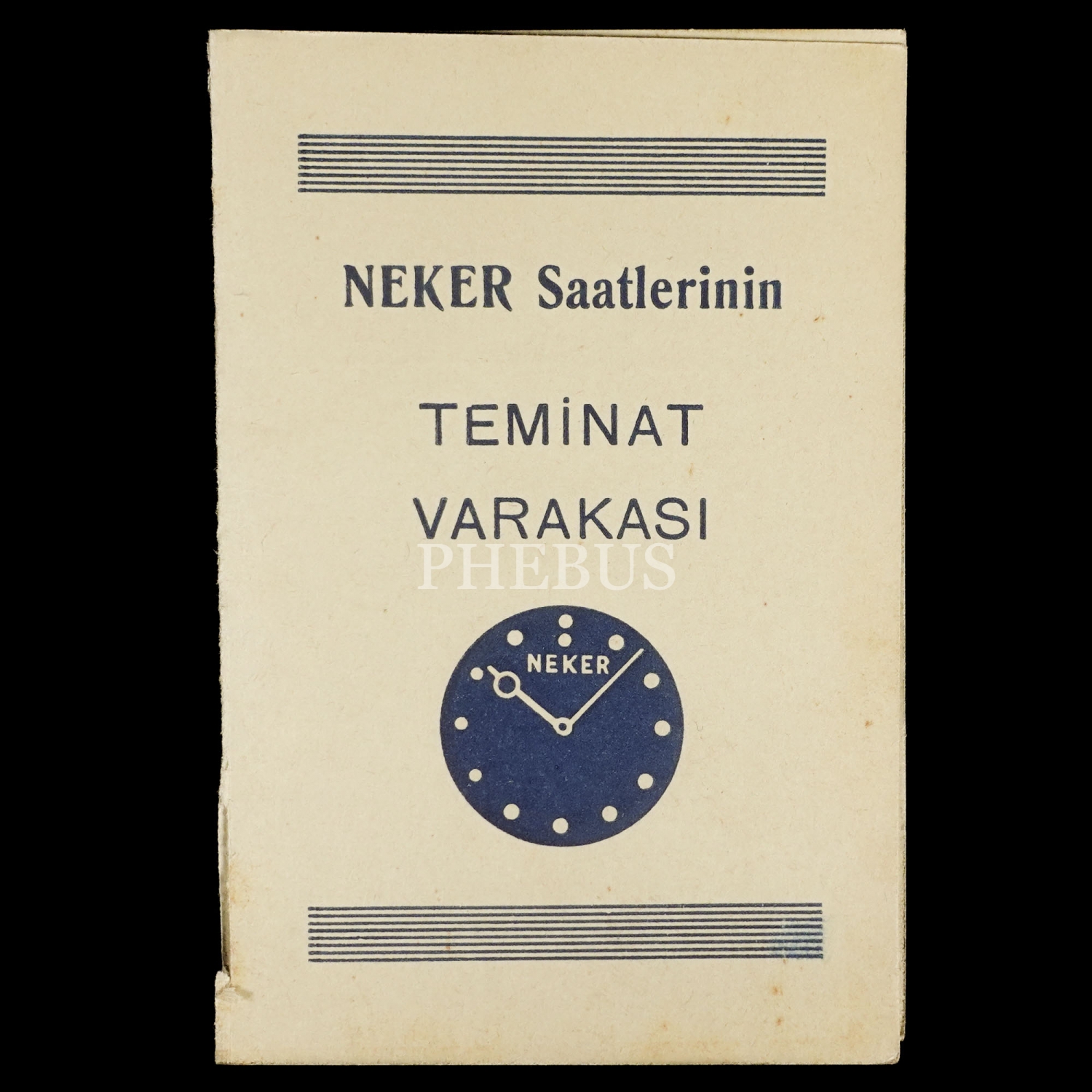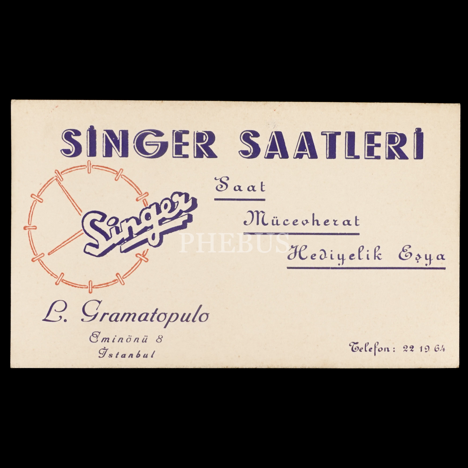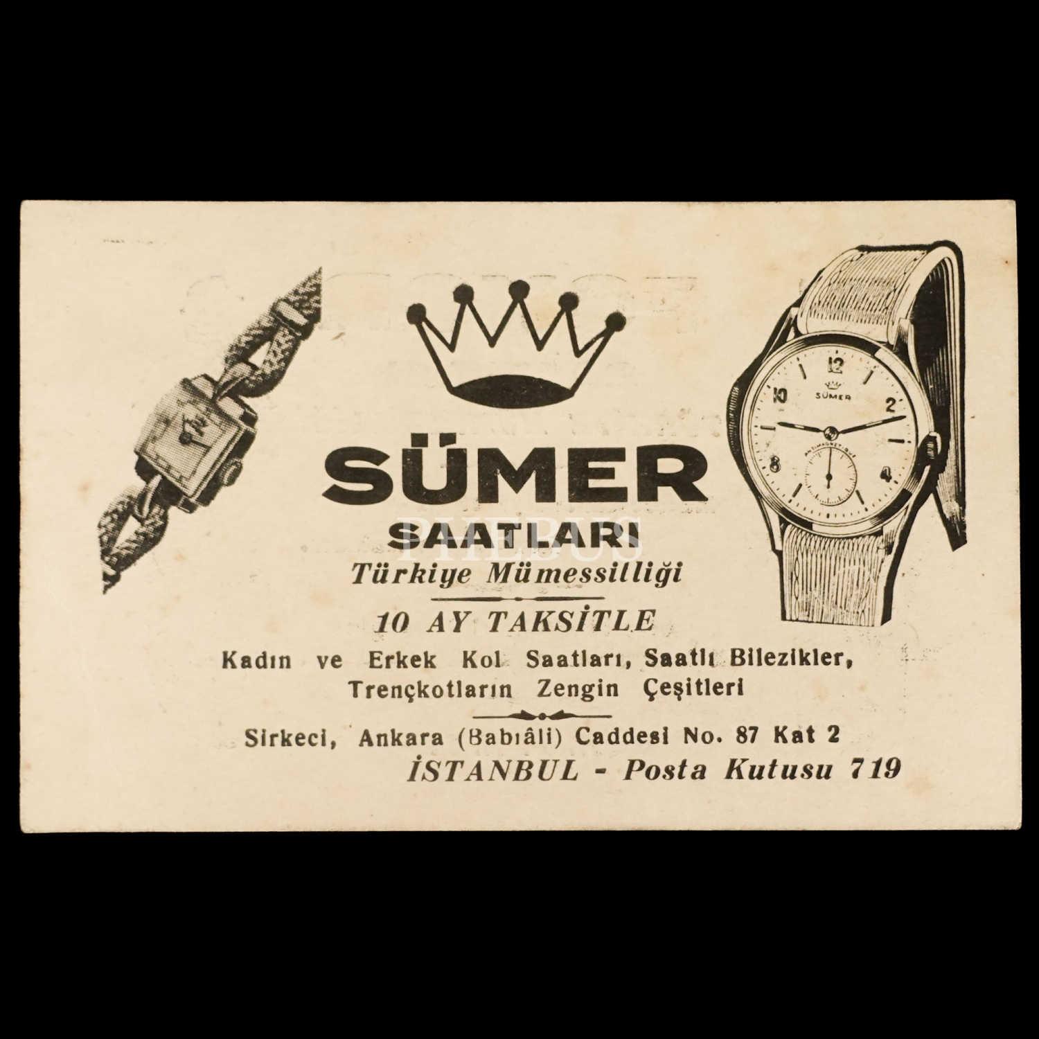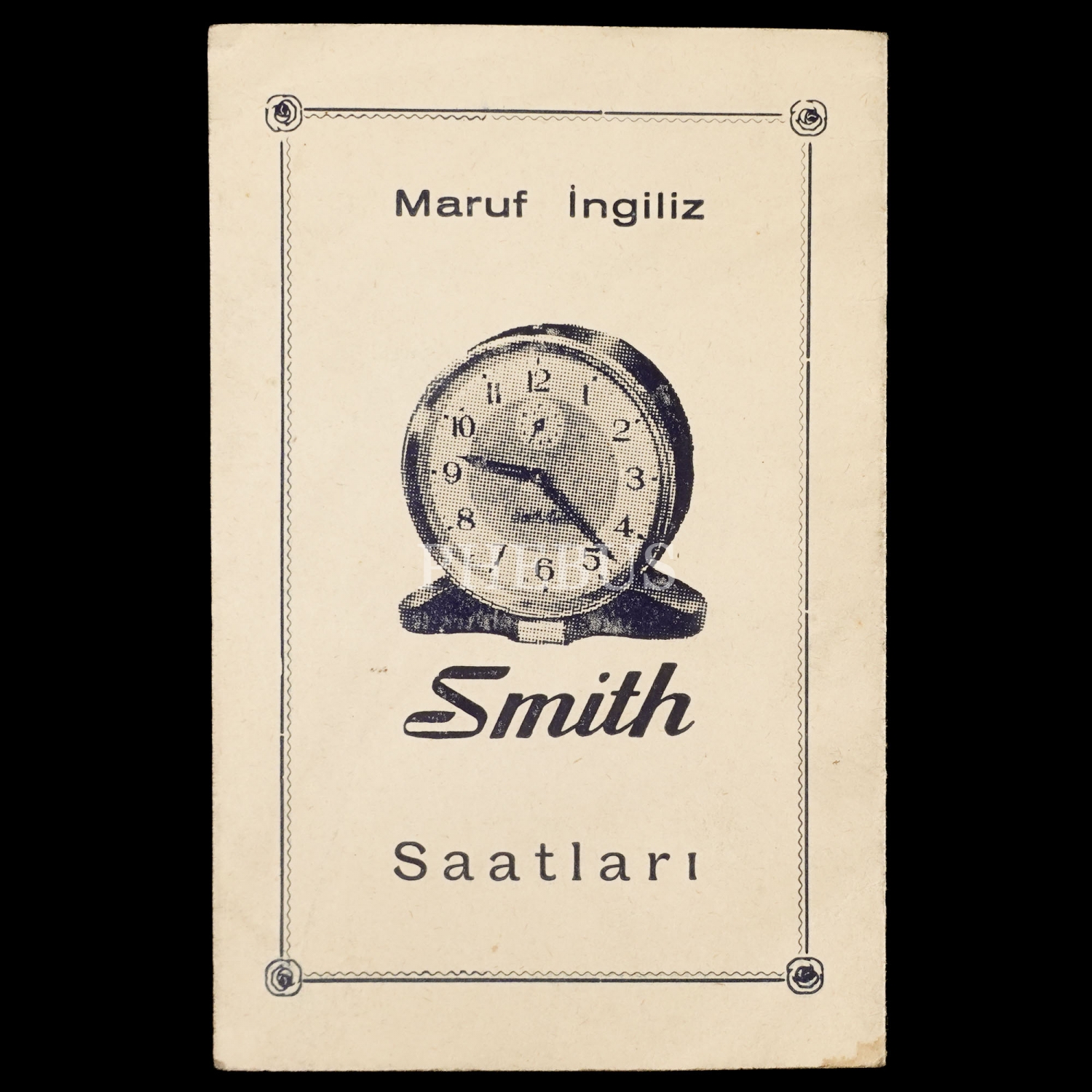 Lot içeriği: 1) "Maruf İngiliz" Smith Saatları´nın teminat varakası (doldurulmuş) 2) Neker Saatleri´nin teminat varakası (doldurulmamış) 3) Singer Saatleri (L. Gramatopulo) reklamlı iş yeri kartı 4) Önlü arkalı Sümer Saatları ve Foxor Saatları reklamlı iş yeri kartı