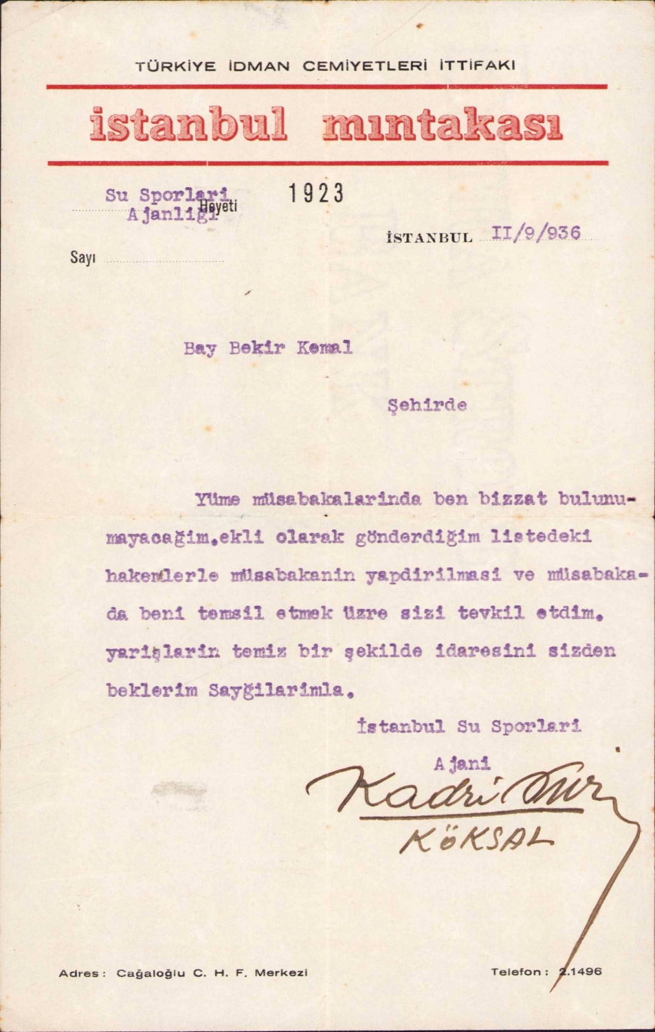Türkiye İdman Cemiyetleri İttifakı İstanbul Mıntıkası antetli evrak, 13x23 cm
