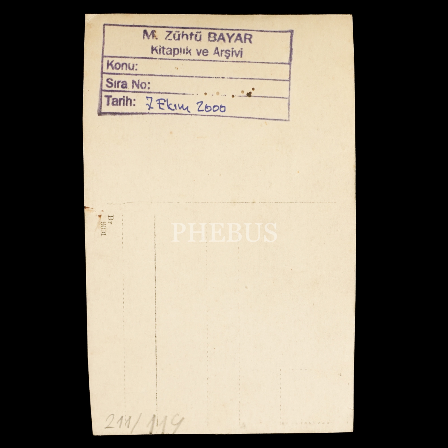 Fotoğrafın arka yüzünde "M. Zühtü Bayar Kitaplık ve Arşivi" kaşesi ve el yazısıyla düşülmüş 7 Ekim 2000 tarihi yer almaktadır.