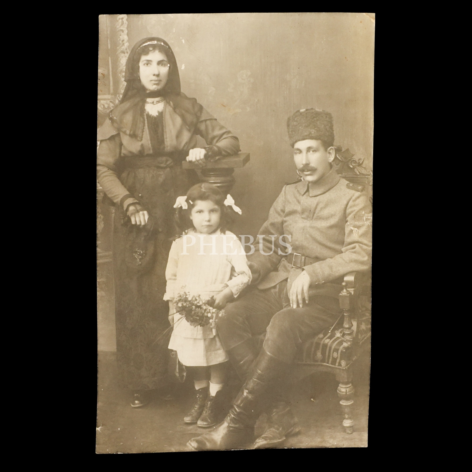 Bir Osmanlı subayının ailesiyle birlikte aldırdığı stüdyo hatıra fotoğrafı, 9x14 cm...