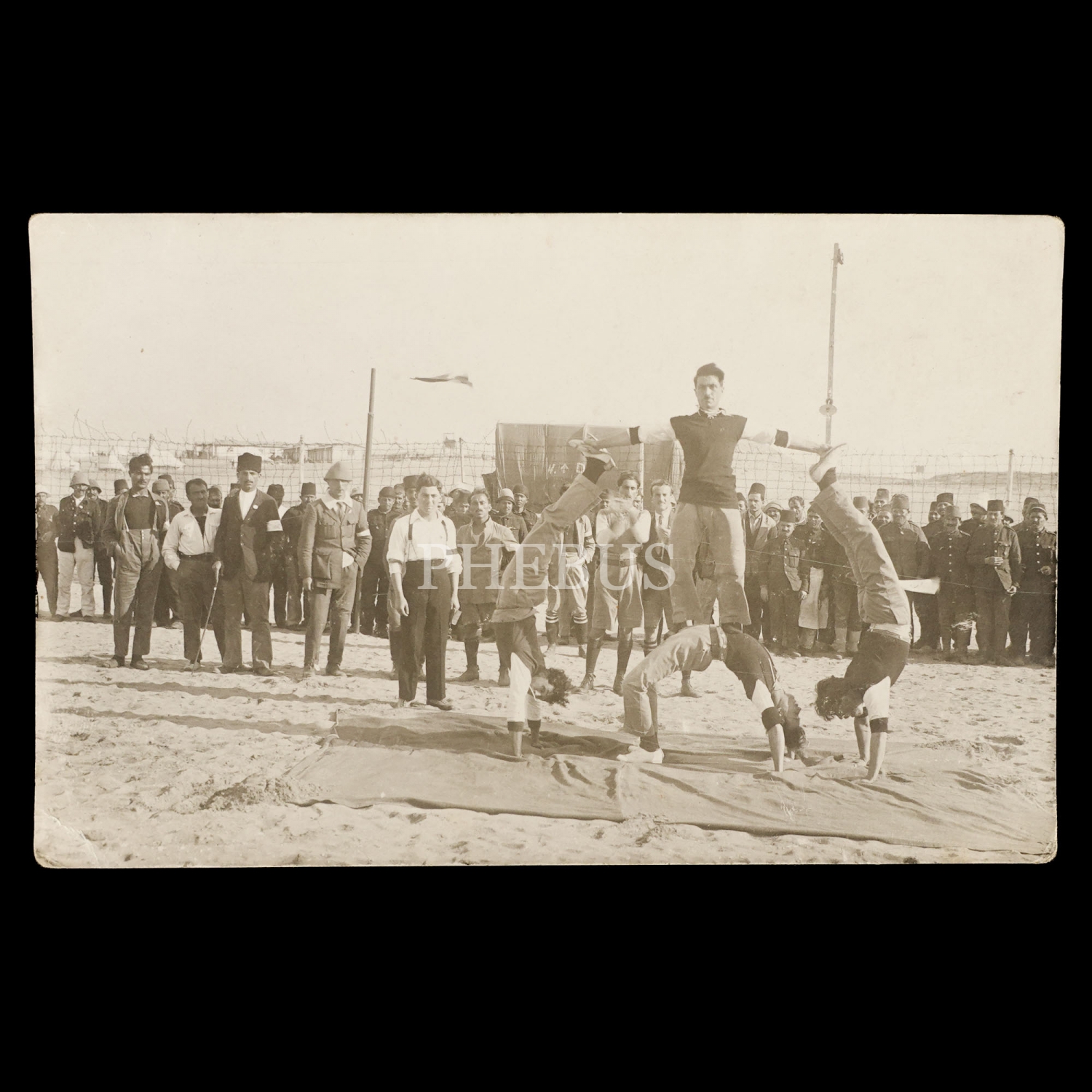 Seydibeşir Esir Kampı´nda jimnastik gösterisi düzenleyen Türk esirler, 14x9 cm...