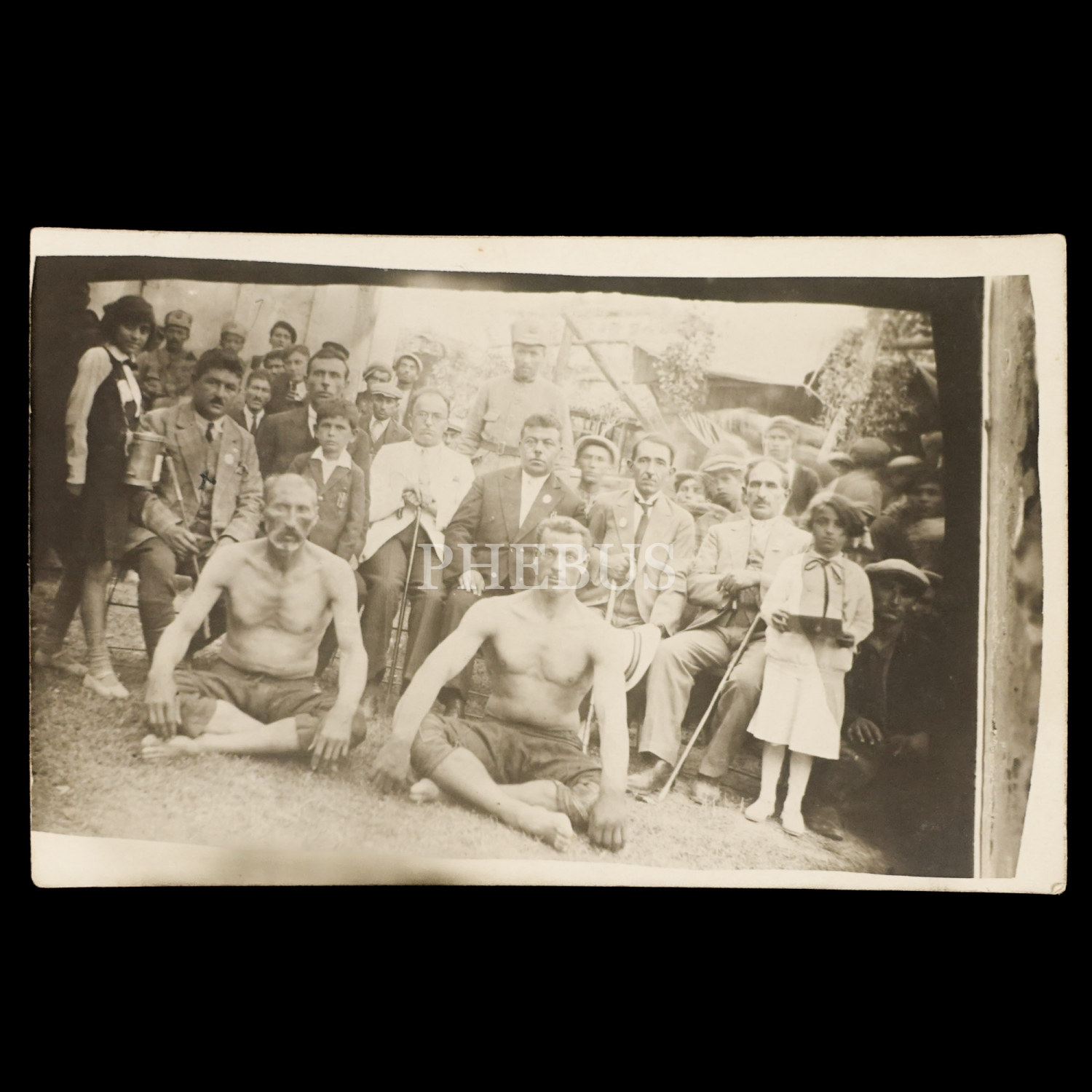 Seydibeşir Esir Kampı´nda güreşen Türk güreşçilerle jüri heyetinin hatıra fotoğrafı, 14x9 cm...