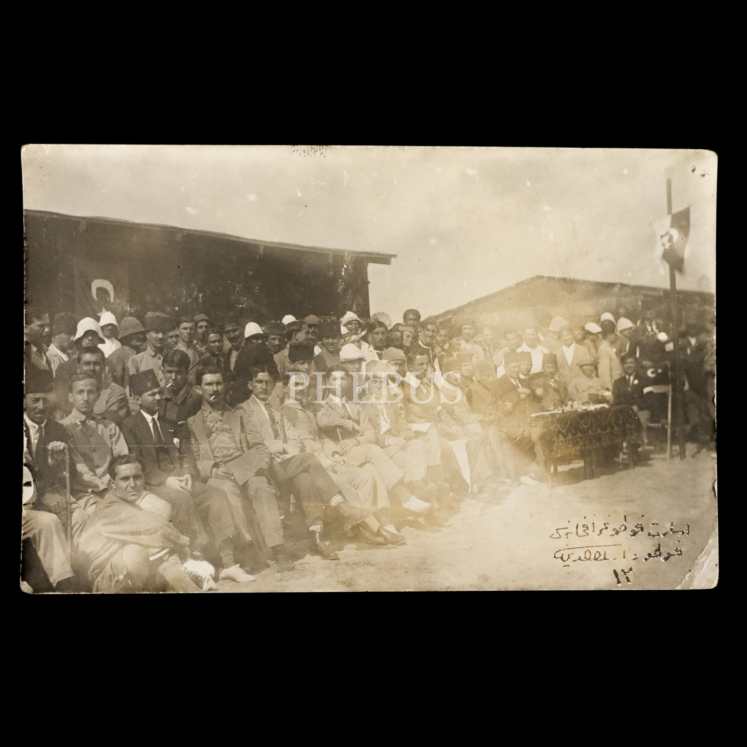Seydibeşir Esir Kampı´nda jimnastik müsabakası düzenleyen Türk esirlerin "Esaret Fotoğrafhanesi" tarafından çekilmiş hatıra fotoğrafı, 14x9 cm...