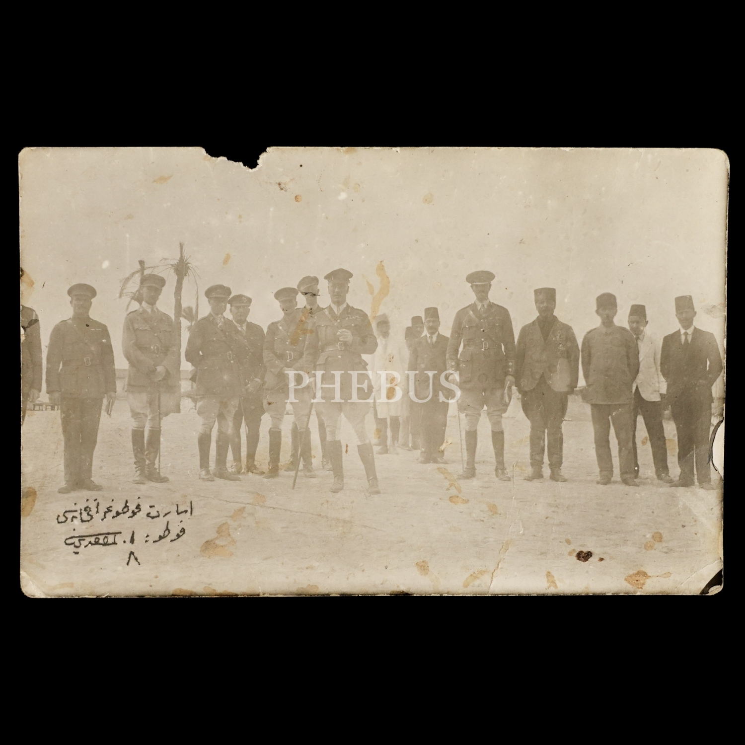 Seydibeşir Esir Kampı nöbetçileri ve Türk esirlerin "Esaret Fotoğrafhanesi" tarafından çekilmiş hatıra fotoğrafı, 14x9 cm.."